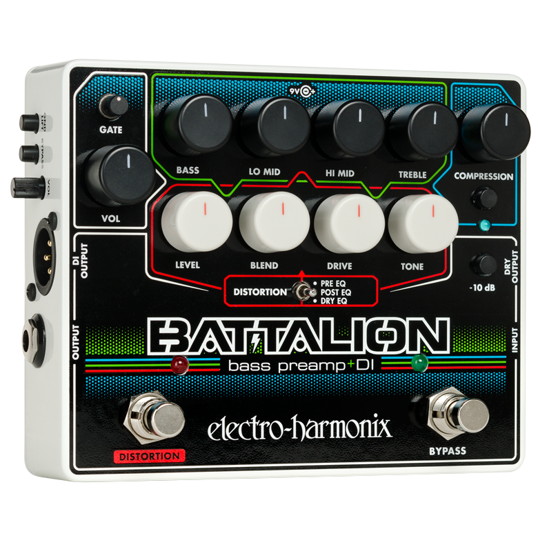 - La section de distorsion du bataillon offre une gamme impressionnante de sons de basse distordus.