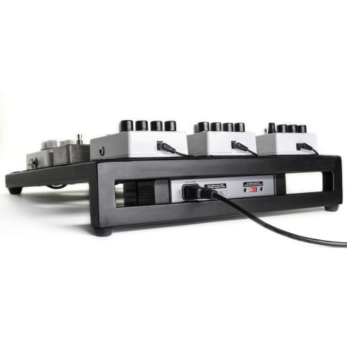 Chacune des sorties du MOP-D10 est centrée négativement et tous les jacks d'alimentation de sortie sont isolés les uns des autres. Les dimensions de chaque connecteur de sortie sont de 5,5 mm x 2,1 mm. L'appareil est fourni avec un cordon d'alimentation détachable de 6′ et dix câbles d'alimentation CC de 24″ de long équipés d'une extrémité droite et d'une extrémité à angle droit. Il comprend également le matériel nécessaire au montage sur le pédalier.