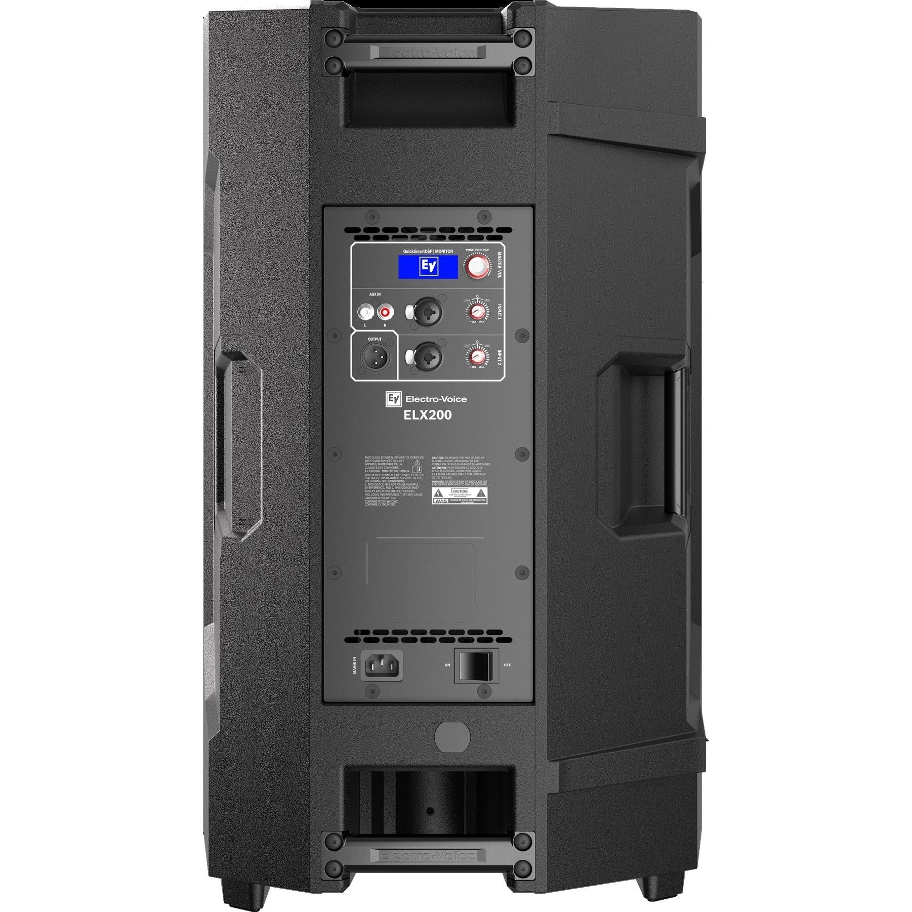 ELX200-15P est équipé d'amplificateurs de puissance classe D haute performance (jusqu'à 1200 W) avec QuickSmartDSP intégré, et fournit des transducteurs SPL de 132 dB SPL, conçus et développés par EV (woofer EVS-15M 15 pouces couplé à un DH-1C) Pilote de compression de 1 pouce en titane). Les modèles full-range amplifiés permettent une configuration facile via quatre préréglages (Music, Live, Speech, Club), des filtres sub / top système, un égaliseur trois bandes, cinq préréglages programmables par l'utilisateur (réglages Store et Recall), un contrôle visuel du limiteur l'état, le contrôle du niveau d'entrée et les compteurs, et le contrôle du volume principal pour assurer une structure de gain optimale.