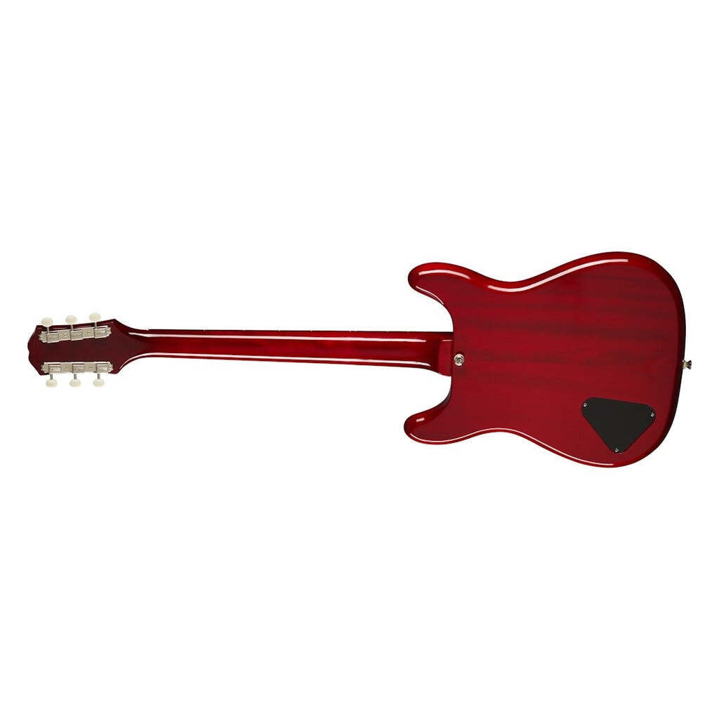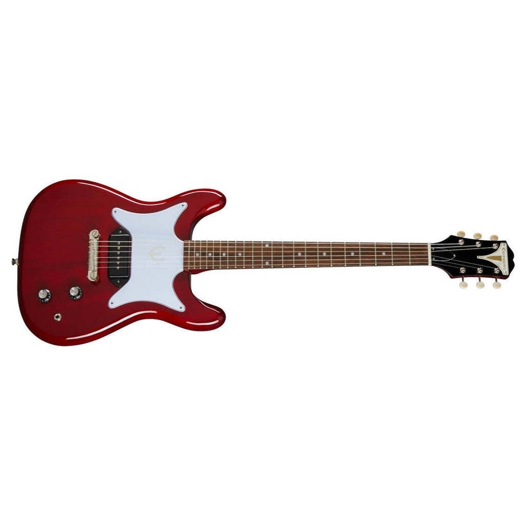 Introduite en 1958, la Epiphone Coronet est l'une des premières guitares électriques à corps solide originales d'Epiphone et l'une des plus réussies. La dernière version reprend de nombreuses caractéristiques des premiers modèles Coronet, notamment le corps symétrique à double pan coupé en acajou avec un seul micro Epiphone PRO P-90 Dogear, trois clés par côtés su rune tête de taille réduite de type Kalamazoo avec l'insigne Epiphone Bikini et des mécaniques à boutons en ivoire et un protège-pic blanc papillon avec le logo E. L'Epiphone Coronet est équipé d'un manche en acajou collé avec un profil C moyen, d'une touche en laurier indien avec un rayon de 12" et 22 frettes jumbo moyennes, d'une commande de volume et de tonalité avec des potentiomètres CTS, et d'un pont enveloppant compensé Epiphone Lightning Bar.