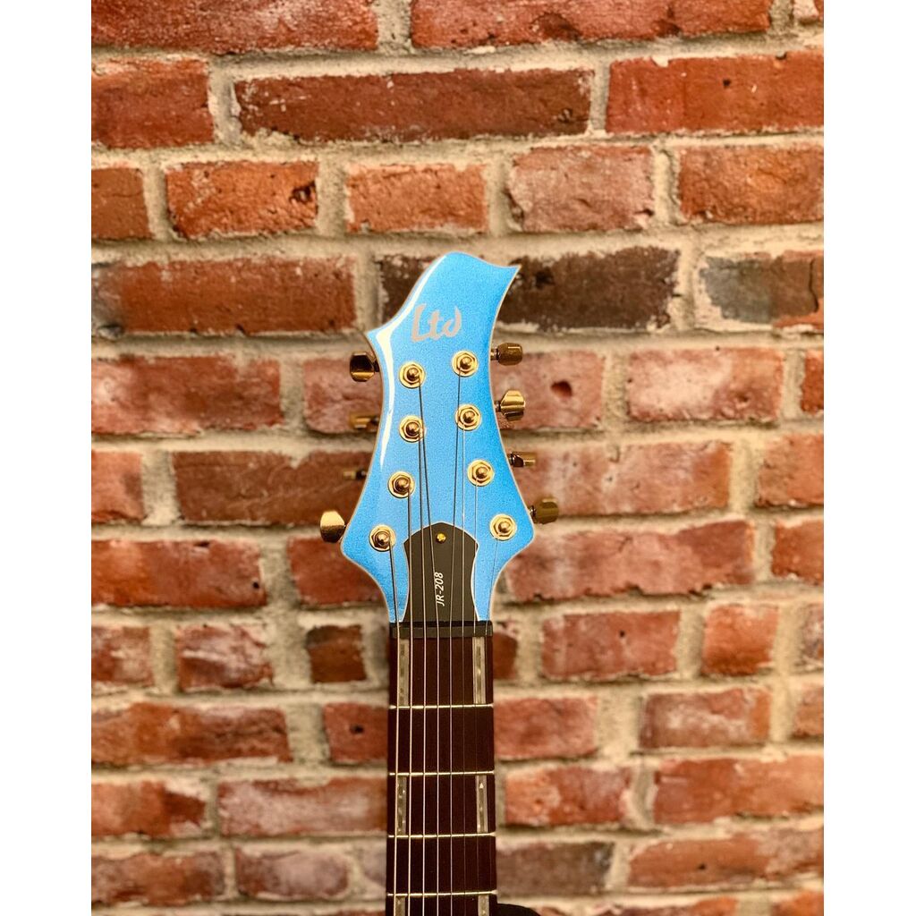 Javier Reyes est l'un des guitaristes les plus novateurs du rock progressif actuel. Il repousse constamment les limites de l'approche de la guitare électrique dans son groupe Animals As Leaders et dans son travail en solo. Maître de la guitare à 8 cordes, Javier nous a aidés à créer la LTD Signature Series JR-208, abordable et de haute qualité. Il s'agit d'une guitare baryton à 8 cordes avec une échelle de 27 pouces, ce qui permet une gamme de tonalités beaucoup plus étendue qu'une guitare standard. Elle comprend un corps en acajou, un manche en érable boulonné, des micros ESP Designed LH-308N et LH-308B, et un pont fixe LTD avec string-thru-body. Les contrôles incluent le volume, la tonalité (avec la possibilité de diviser les micros en simple bobinage), et un sélecteur de micros à 3 voies. Disponible en finition Pelham Blue avec des pièces dorées.