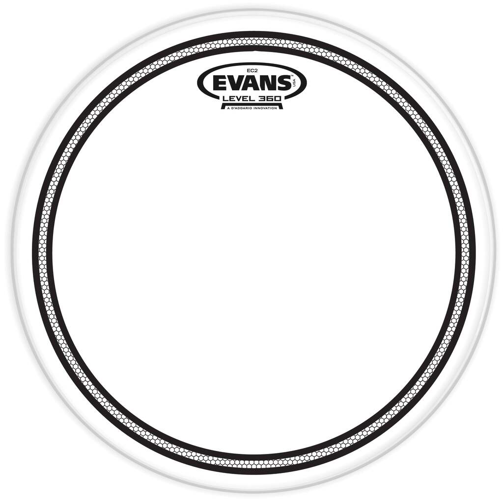 La gamme de peaux transparentes EC2 par Evans est fabriquée en film double-pli (7 millièmes par pli) avec une conception optimisée pour l'attaque, le son, la durée du sustain, et la facilité d'accordage de chacune des tailles de peau. L'anneau SST (Sound Shaping Technology, technologie de modelage du son) monté du côté inférieur de la peau offre un son extrêmement équilibré et pré-égalisé sur l'ensemble du kit grâce à son réglage variable pour chaque peau.