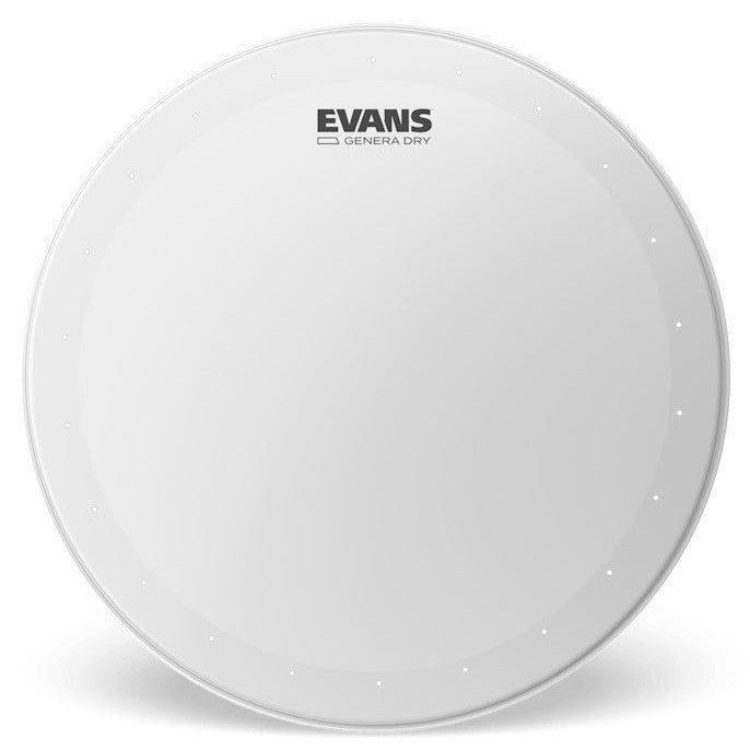 Les têtes de caisse claire Genera Dry d'EVANS offrent un son bien focalisé mais naturel. Fabriquée avec un seul pli de film enduit de 10 millimètres, un anneau de contrôle des harmoniques de 2 millimètres et des évents secs percés avec précision, cette tête réagit comme un simple pli tout en éliminant les harmoniques persistantes. Les battes de caisse claire Genera Dry offrent une attaque équilibrée, un sustain court et un son sombre, ainsi que la durabilité accrue du revêtement EVANS de première qualité. Cette tête revêtue est également dotée de la technologie Level 360.