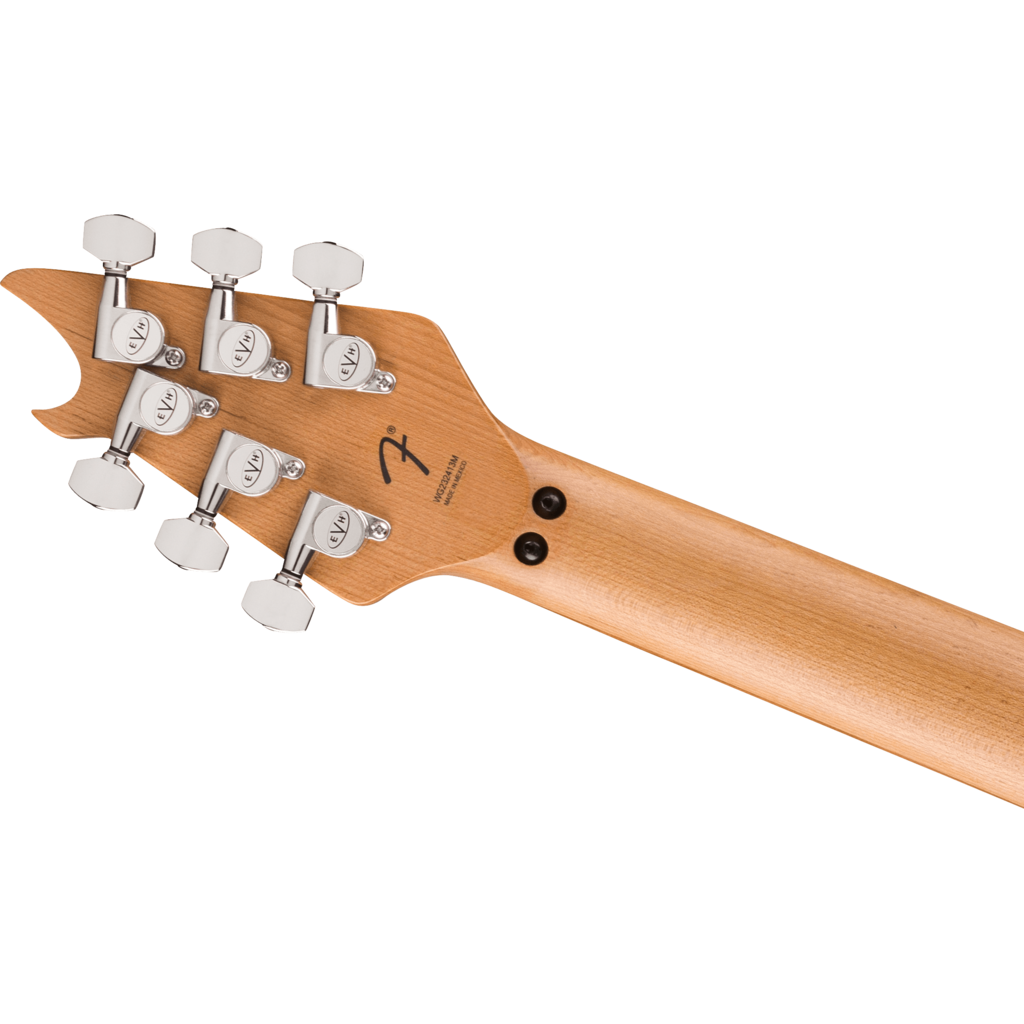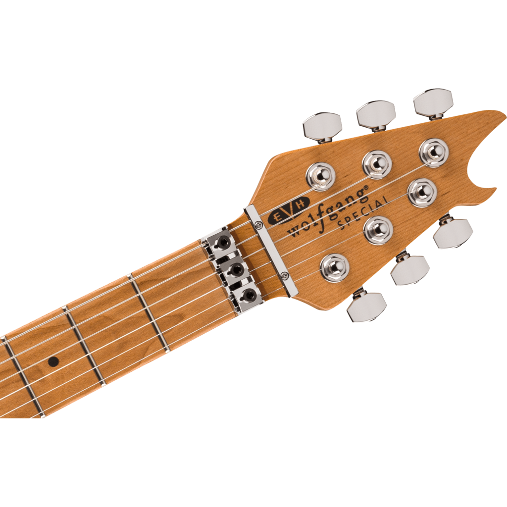 La Wolfgang Special QM est dotée d'un corps en tilleul, d'une table d'harmonie en érable ondulé et d'un manche robuste en érable ondulé renforcé par du graphite. Le manche est sculpté et roulé selon les spécifications exactes d'Eddie Van Halen et présente une finition en uréthane satiné frottée à la main sur le dos. Préparée pour des performances élevées, des riffs énergiques et des leads flamboyants, la touche en érable cuit à rayon composé de 12 à 16 pouces comporte 22 frettes jumbo et des incrustations de points noirs. Le réglage du truss rod n'a jamais été aussi facile grâce à une molette située à la base du manche.