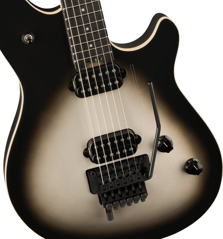 A pair of flagship custom-designed EVH® Wolfgang Alnico 2 humbucking pickups are mounted directly to the body, providing dynamic yet articulate voicing, as well as endless sustain for powerful chords and melody lines. A sturdy and dependable EVH-branded Floyd Rose® locking trem and Floyd Rose locking nut work in tandem for precise tuning even with extreme changes in pitch, while the EVH D-Tuna® retunes to drop-D and back with strict accuracy at the flick of a finger. The volume knob with treble bleed circuit has a 500K EVH Bourns® low friction pot for smooth swells and a tone control knob with a 250K Bourns high friction tone pot that prevents accidental tone shifting.