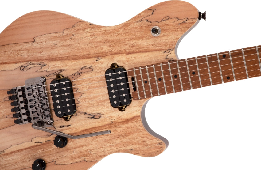 Les deux micros EVH® Wolfgang humbucking montés directement sur le corps augmentent le transfert des vibrations, ce qui permet d'obtenir un sustain pendant des jours. Deux boutons de contrôle en forme de dôme sont conformes aux spécifications rigoureuses de Van Halen : les pots de 500 k permettent de trouver facilement un son unique tout en conservant l'éclat haut de gamme des micros Wolfgang. Le chevalet Floyd Rose® Special de la marque EVH et l'écrou de blocage R2 maintiennent l'instrument en parfait état de marche, même lors des plongées les plus profondes et des hennissements de chevaux.