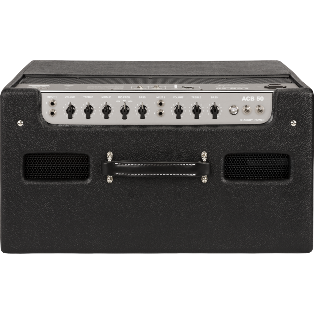 Les cosmétiques classiques, le panneau chromé et les boutons à tête de poulet reproduisent le look classique de Fender que les joueurs du monde entier ont appris à aimer. L'ACB 50 comprend un haut-parleur léger Eminence® Neo 15" qui contribue à accentuer son son gras et puissant et dispose d'une sortie de ligne XLR pour envoyer ce super son à votre installation d'enregistrement ou à votre façade.