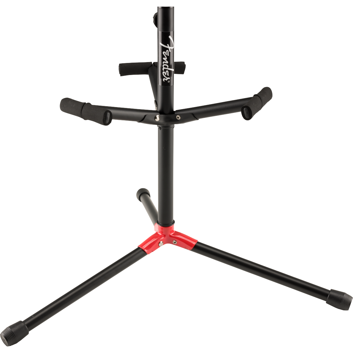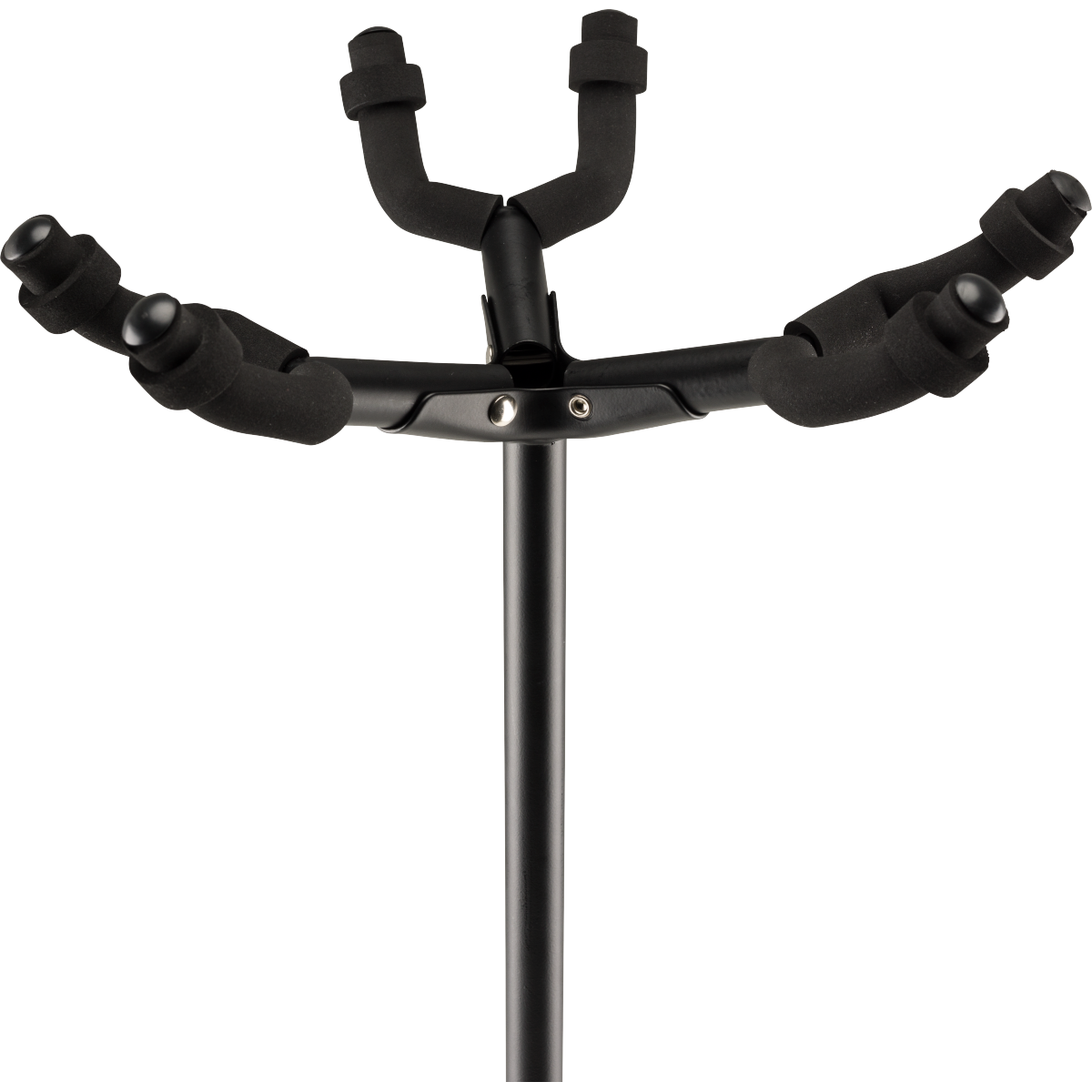 Le support de guitare réglable et suspendu de Fender met en valeur votre guitare acoustique, électrique ou basse. Le support de manche réglable en hauteur accepte confortablement différentes tailles d'instruments tandis que le support inférieur pivote pour s'adapter aux styles de corps standard et décalés. La construction métallique de ce support est suffisamment durable pour une utilisation sur route, et les empiècements rembourrés offrent une sécurité pendant l'utilisation. Parfait pour le musicien en déplacement, ce support est facilement pliable pour un transport pratique.