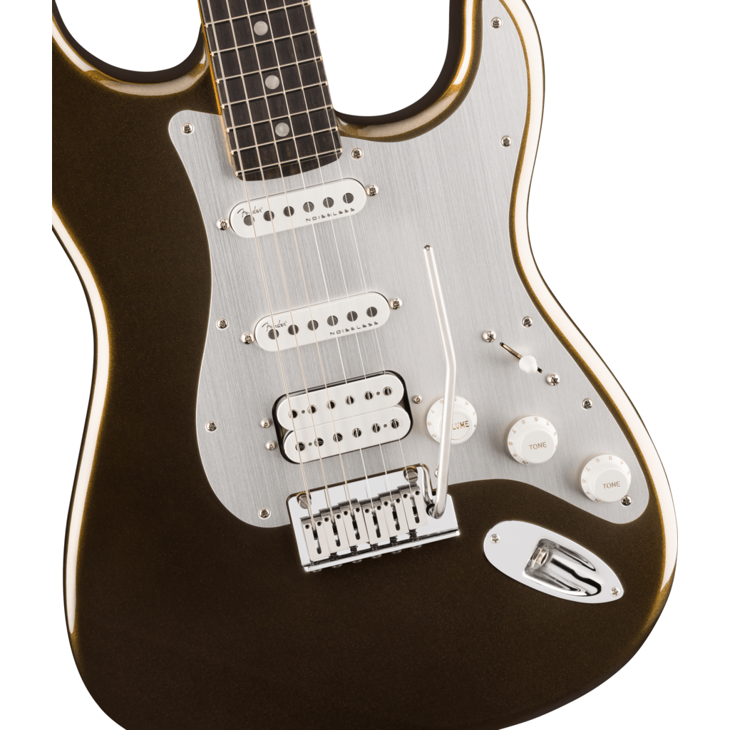 Sous le capot, une paire de micros Ultra II Noiseless™ Hot Strat® associés à un humbucker Haymaker™ délivrent tout, des sons clairs cristallins doux aux sons principaux brûlants, le tout sans la moindre trace de bourdonnement. Notre commutateur breveté S-1™ divise intelligemment le Haymaker pour encore plus de variété tonale. Les autres caractéristiques prêtes pour la route comprennent un vibrato synchronisé American Ultra à 2 points avec bras pop-in, des pontets en acier inoxydable poli, un bloc en acier laminé à froid, des mécaniques de verrouillage de luxe, des boutons doux au toucher et un pickguard en aluminium anodisé 1 pli.