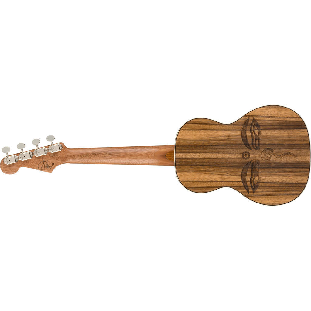 Le Ukulélé Signature Dhani Harrison est disponible en deux finitions, avec des incrustations uniques sur la touche et ses dessins gravés à l’arrière de l’instrument, des détails qui ont une signification toute personnelle pour l’artiste. Ces deux modèles ténors sont parfaits pour le jeu en live. Ils présentent une table en ovangkol massif, un dos et des éclisses en ovangkol, et une profondeur du corps 3/4 custom. L’électronique Fender optimisée inclut un potentiomètre de tonalité, un réglage que l’on ne trouve pas fréquemment sur un ukulélé, mais qui est indispensable pour en accroître les possibilités sonores. Avec sa forme particulière et son aspect attrayant, le Ukulélé Signature Dhani Harrison vous invite à élargir votre horizon musical.