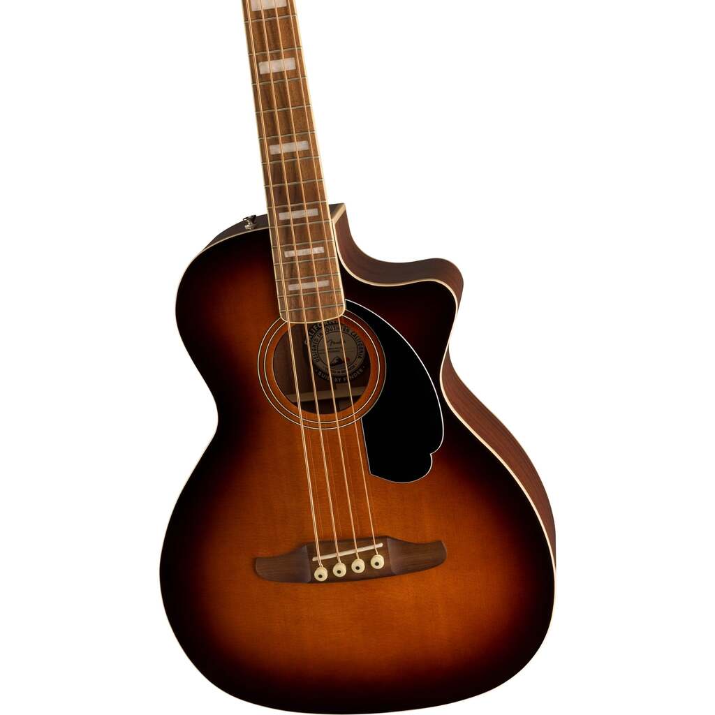 Crafted with an X-braced solid spruce top and sapele back and sides, the compact mid-sized auditorium body of the Kingman™ Bass produces a deep, punchy, and articulate tone and features a cutaway for convenient access to the upper frets. The bound nato neck is elegantly appointed with block inlays and is designed with a slim "C"-shaped Jazz Bass® profile, an easy-to-play short 30" scale length, comfortable 1.5" nut width, and a 4-in-line headstock for a distinctive look born from Fender's electric bass DNA. Other notable details include open-gear vintage-style tuning machines for smooth, accurate tuning, a GraphTech® NuBone® nut and saddle for focused fundamental tone, and a Fishman® Presys preamp system that allows detailed fine-tuning of the bass's amplified sound when performing or recording. A deluxe gig bag is included.