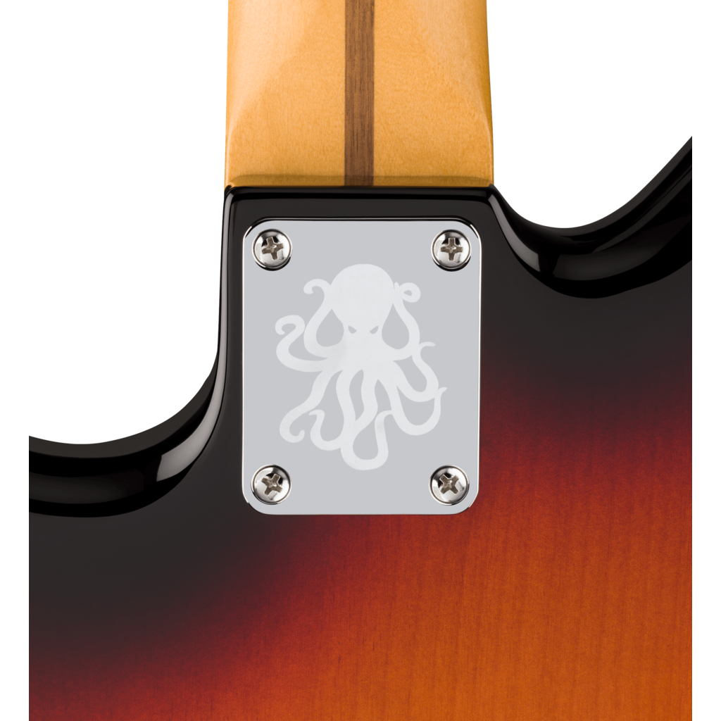 Voici la basse Fender® Limited Edition Mark Hoppus Jaguar®. Cette édition limitée sera épuisée avant même que vous ne clignez des yeux, alors prenez la vôtre dès aujourd'hui et possédez le modèle exact que Mark Hoppus joue actuellement sur scène avec Blink-182. Pour commencer, vous obtenez un corps Jaguar® en aulne solide comme le roc et tout en courbes. Ajoutez à cela un manche en érable avec un profil « C » personnalisé, une belle touche en palissandre et d'élégants points nacrés blancs, le tout surmonté d'un jeu de mécaniques légères de style vintage. Le pickguard perlé blanc à 4 plis est équipé de micros Seymour Duncan® SPB3 Quarter Pound™ split-coil P Bass® montés sur mesure en positions inversées. Pour un son stellaire et une intonation solide comme le roc, cette basse Jaguar est dotée d'un chevalet HiMass™ Vintage. La plaque de manche personnalisée présente le logo pieuvre « Hi My Name is Mark » de Mark, tout comme le sac de transport de luxe inclus.
