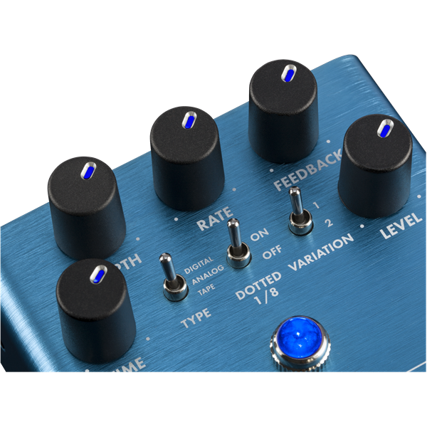 On ne peut nier la puissance d'un bon délai; allant de subtile à brisant, cet effet ambiant est l'une des pierres angulaires de la musique moderne. Le Mirror Image Delay apporte cet effet atmosphérique à votre rig, vous donnant la possibilité de créer de la profondeur avec un slapback simple ou de développer un paysage sonore épique avec des répétitions modulées. Les modes Digital, Analog et Tape - chacun avec deux variations de voix - rendent cette pédale expressive et inspirante indispensable. Il a même la possibilité d'ajouter une huitième pointillé pour ces lavages de sons inspirés de l'Irlande. Les queues de retard continuent lorsque la pédale est contournée, assurant un son naturel. Conçu par notre équipe interne d'experts, le Mirror Image Delay est un circuit entièrement original. Nous avons consulté une pléthore de joueurs lors de la conception de cette pédale, et la pédale qui en résulte est emballé avec des fonctionnalités prêtes pour la scène. Le châssis est fabriqué en aluminium anodisé léger et durable, et l'Amp Jewel LED donne à votre pédalier le look Fender classique. Les boutons à rétroéclairage LED montrent vos paramètres de contrôle sur une scène sombre en un coup d'œil. Nous avons même fait des permutations de piles plus rapides et plus faciles grâce à notre porte-pile exclusive de 9 V à verrouillage magnétique. Expressif et inspirant, le Mirror Image Delay est la dernière offre de la société qui a défini le légendaire Fender.