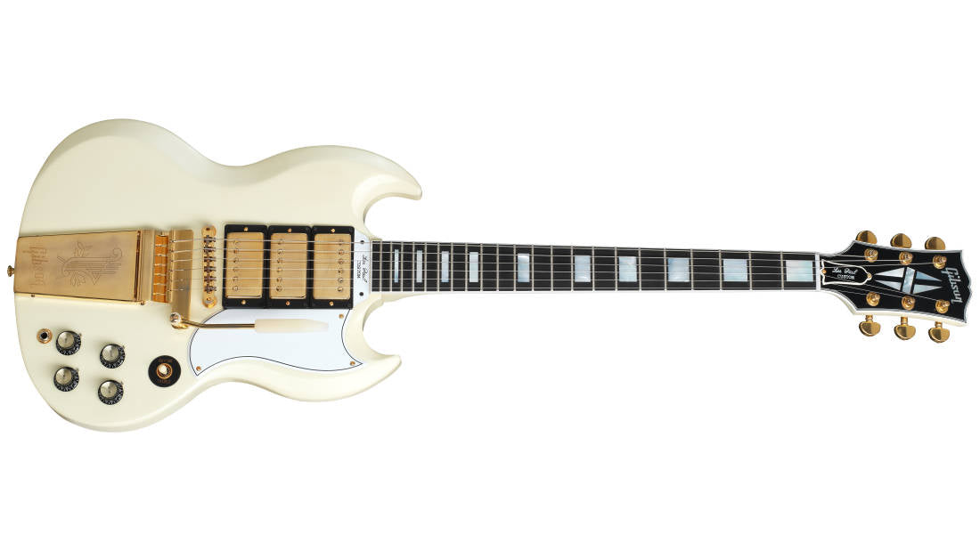 La dernière année de l'appellation "Les Paul" sur la SG Custom fut également la première année de la Maestro Vibrola... 1963. Gibson Custom Shop a fièrement recréé cette version désirable de la SG Custom jusqu'aux méthodes de construction et aux contours originaux. Le résultat est un instrument magnifique, polyvalent et d'une sonorité extraordinaire qui se joue sans effort. La touche en ébène massif et l'électronique de style vintage remaniée lui permettent d'atteindre de nouveaux sommets sonores en termes de clarté et de sustain. Des dimensions aux contours, en passant par les motifs d'incrustation précis et l'expérience sonore, c'est le haut de gamme de la SG à tous égards !