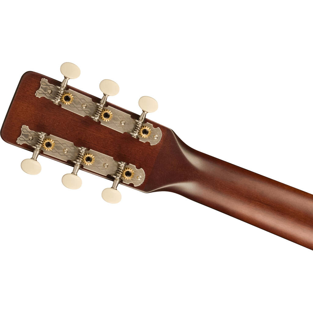 The X-braced body is crafted with select lightweight laminate tonewoods for an optimal balance of woody vintage tone and reliable durability, while the “C”-shape neck presents an inviting feel for hours of old-timey inspiration. The onboard Gretsch Deltoluxe magnetic soundhole pickup produces versatile electrified acoustic tone, providing added utility for live performance, recording, and effects pedals. Period-correct details such as a vintage-style pinned bridge, “G”-graphic pickguard, painted pinstripe purfling, 3-on-a-plate open-gear tuning machines and oversized dot fingerboard inlays combine for a nostalgic personality destined for any barnburner or jamboree.