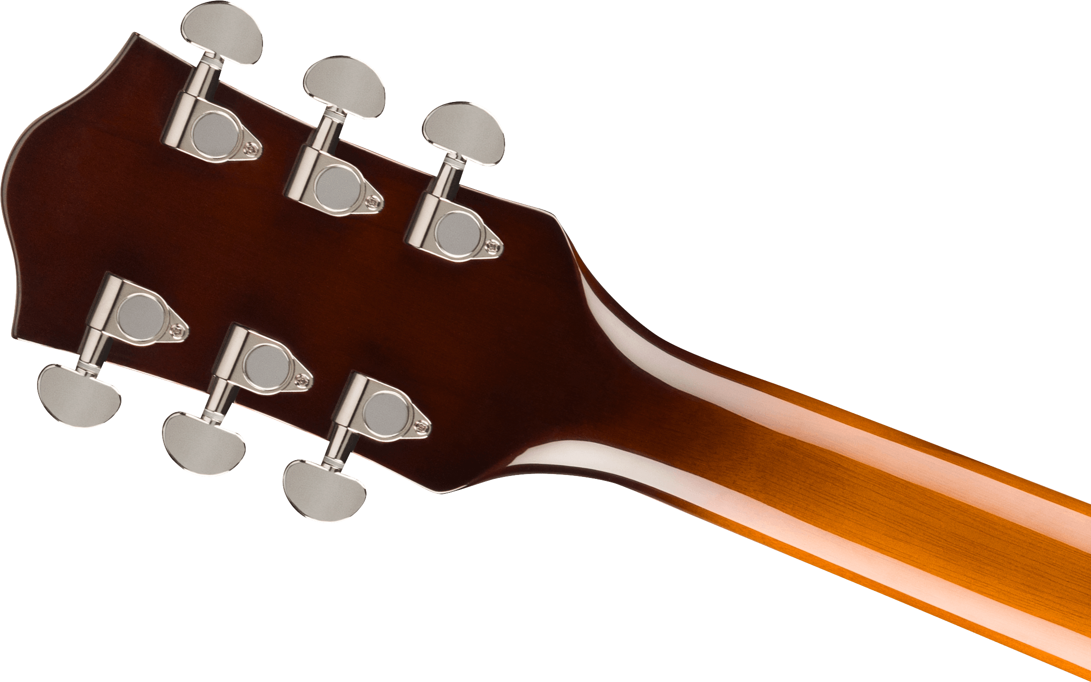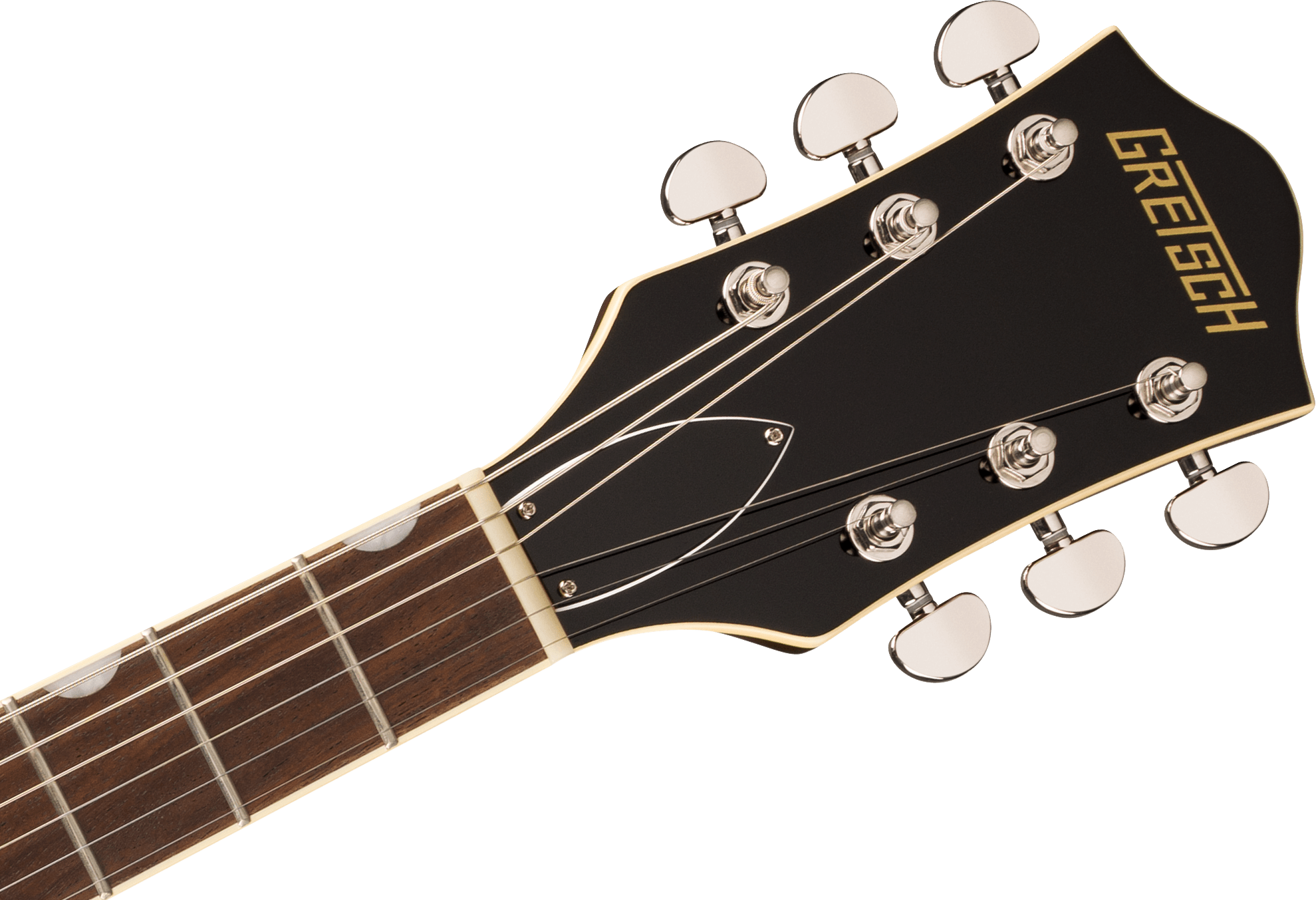 Le G2420T Streamliner Hollow Body Single-Cut avec Bigsby® est doté d'un corps arqué entièrement creux en érable avec des barres de tonalité parallèles pour une plénitude riche, une résonance profonde et un "son de gros corps"."