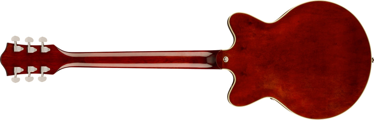 The G2655 Center Block Jr. features a smaller arched maple body with an all-new center block design under the hood. This new center block is designed to balance lightweight comfort with a full, rich sound and increased presence; resulting in improved attack and sustain, and excellent feedback rejection, in a comfortable package that won't weigh you down.
