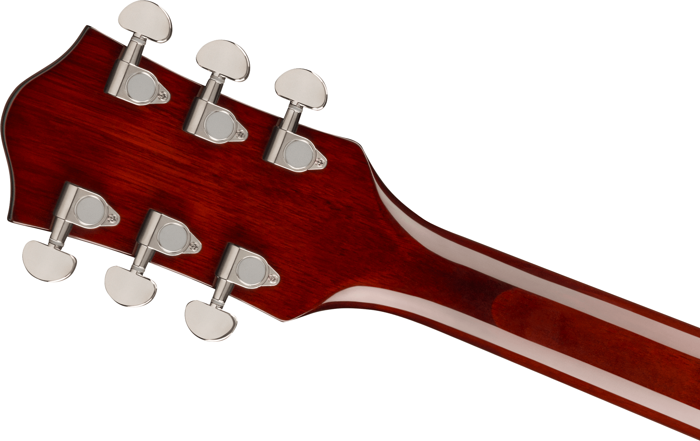 La G2655T Center Block Jr. est dotée d'un corps en érable plus petit et arqué et d'un tout nouveau bloc central sous le capot. Ce nouveau bloc central est conçu pour équilibrer le confort de la légèreté avec un son plein et riche et une présence accrue ; ce qui se traduit par une attaque et un sustain améliorés, et un excellent rejet du feedback, dans un ensemble confortable qui ne vous pèsera pas.