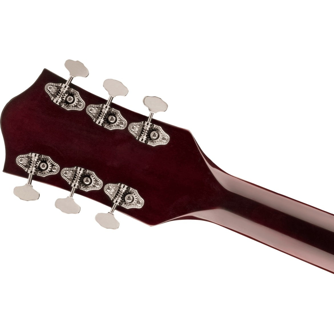 Alif et résonnant, le G5420T dispose également d’une disposition de contrôle améliorée polyvalente, y compris un volume maître avec circuit de purge des aigus, une tonalité principale, des commandes de volume de micro individuelles et un commutateur à bascule de micro à trois positions, des trous F liés surdimensionnés, une fixation de corps multicouche, une tête plus petite liée À la fin des années 50, des machines de réglage à dos ouvert de style vintage, un écrou Graph Tech® NuBone®, des incrustations de vignettes Neo-Classic™ perlées, un pont Adjusto-Matic™ sécurisé et un empennage vibrato Bigsby® B60.