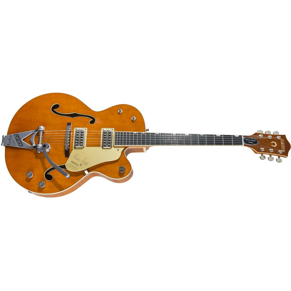 En hommage à une légende du rock'n'roll, la G6120T-BSSMK Brian Setzer Signature Nashville® Hollow Body '59 "Smoke" with Bigsby® est une reconstitution de la principale guitare de scène de Brian depuis qu'il a retiré la célèbre "Stray Cat". Hommage minutieux à l'une des guitares les plus précieuses de Brian, la Smoke offre une ambiance vintage 59 avec des performances exceptionnelles.
