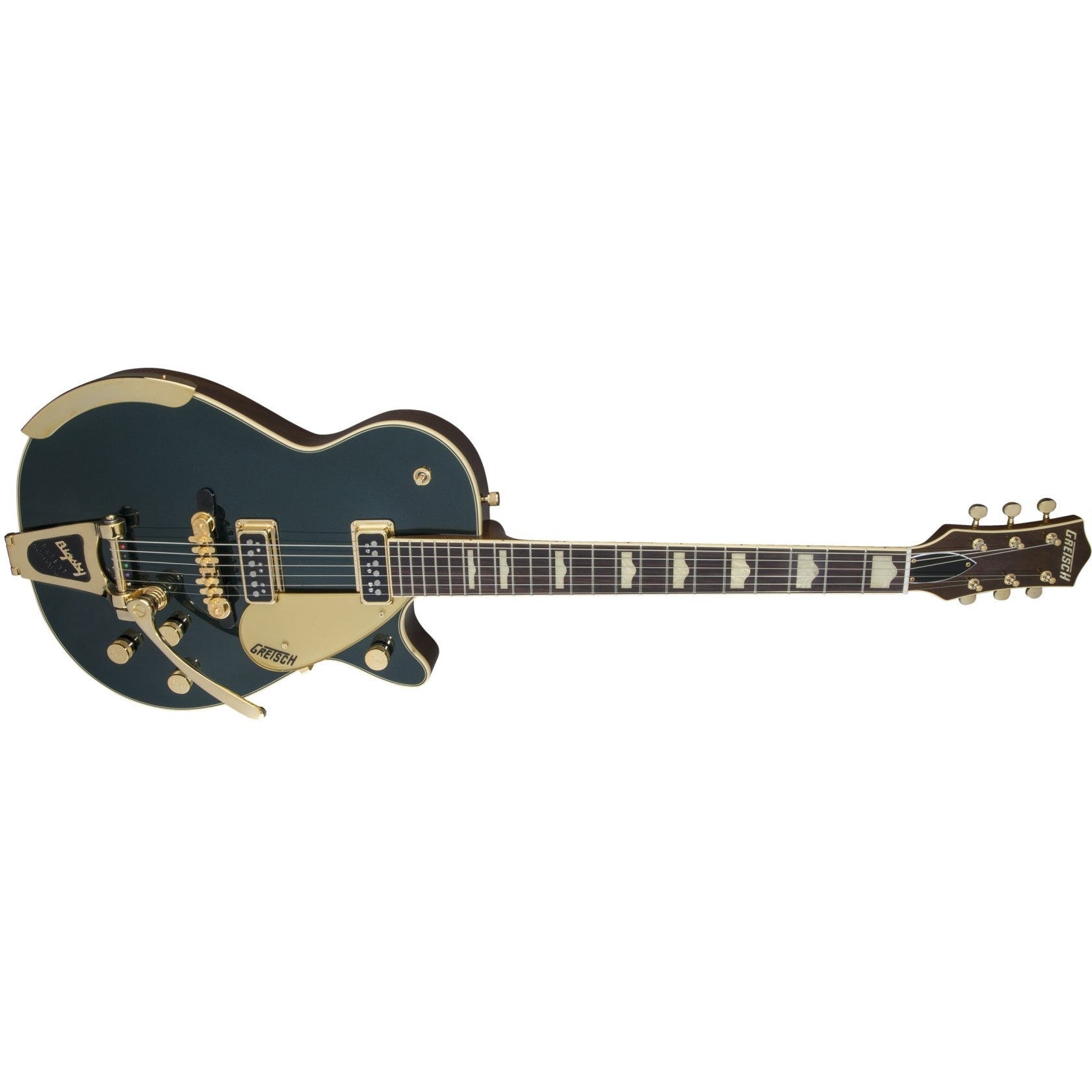 Inspirées par les années charnières et prolifiques de l'âge d'or de Gretsch dans les années 1950 et au début des années 1960, les guitares Vintage Select Edition sont conçues pour le joueur qui apprécie le meilleur de l'héritage des instruments de musique. En vert Cadillac élégamment stylé avec des éléments dorés, la nouvelle G6128T-57 Vintage Select '57 Duo Jet™ avec Bigsby® incarne cet héritage à la perfection.