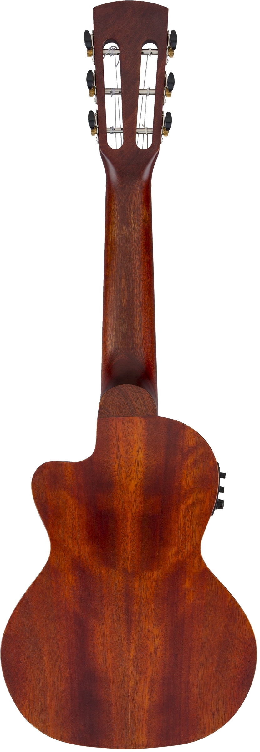 Its features include a 17" scale and convenient cutaway, Fishman® Kula pickup/preamp system, solid quartersawn mahogany top, mahogany back and sides, one-piece mahogany neck, 19-fret ovangkol fingerboard with "snowflake" position markers and bone nut, ovangkol bridge with bone saddle, Grover® Sta-Tite™ tuners and a deluxe fitted gig bag.