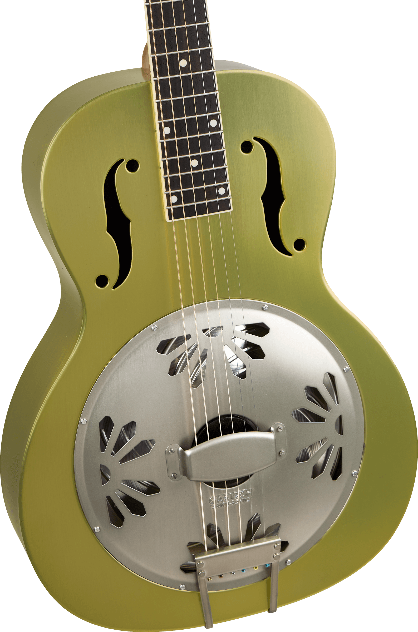 La caractéristique essentielle de toutes les guitares à résonateur Gretsch est le tout nouveau diaphragme Gretsch « Ampli-Sonic » (cône de résonateur). Tourné à la main en Europe de l'Est à partir d'aluminium pur à près de 99 %, le diaphragme Ampli-Sonic produit une qualité et un volume sonore impressionnants.