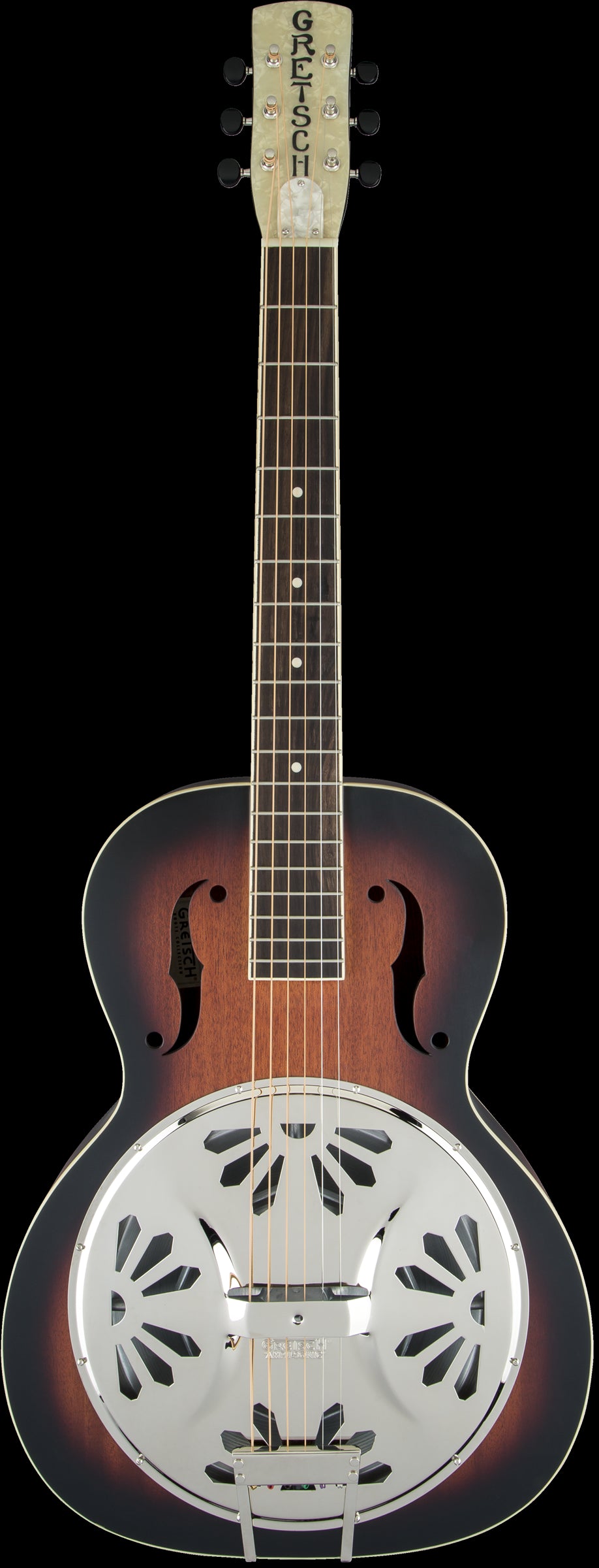 Product Specs Model Name G9220 Bobtail™ Round-Neck A.E., Mahogany Body Spider Cone Resonator Guitar, Fishman® Nashville Resonator Pickup, 2-Color Sunburst Model #2716013503 Color 2-Color Sunburst Body Laminated Mahogany Body Finish Vintage Semi-Gloss Body Shape Resonator Neck Material Mahogany Neck Finish Vintage Semi-Gloss Neck Shape Medium "V" Scale Length 25" (635 mm) Fingerboard Padauk Fingerboard Radius 15.75" (400 mm) Number of Frets 19 (12 to Body) Frets Size Medium Jumbo String Nut Bone Nut Width 1.75" (44.45 mm) Position Inlays White Dots Truss Rods Dual-Action Head Adjust Controls NA Bridge Spider - Fishman® Nashville Hardware Finish Chrome Tuning Machines Grover® Sta-Tite™ Die-Cast Pickguard None Strings D'Addario® EJ16 Phosphor Bronze, Light (.012-.053 Gauges) Unique Features{"en":"Fishman® Nashville Resophonic Pickup; Gretsch Ampli-Sonic™ Spider Resonator Cone and Bridge; Nickel-Plated Poinsettia Design Cover-Plate; 1930s Gretsch Headstock with Aged Pearloid Face."} Included Accessories Optional: 099-6481-000 Gig Bag - G2180 - Resonator Gig Bag; 099-6495-000 Economy Case - G6296 - (Flat) Round Neck Resonator Dimensions 8.00x20.00x44.50 IN