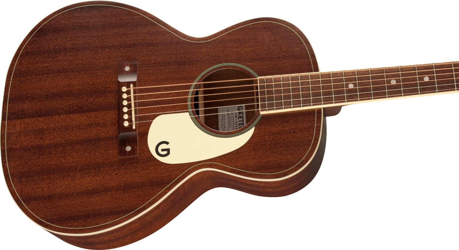 The X-braced body is crafted with select lightweight laminate tonewoods for an optimal balance of woody vintage tone and reliable durability, while the “C”-shape neck presents an inviting feel for hours of old-timey inspiration. Period-correct details such as a vintage-style pinned bridge, “G”-graphic pickguard, painted pinstripe purfling, 3-on-a-plate open-gear tuning machines and oversized dot fingerboard inlays combine for a nostalgic personality destined for any barnburner or jamboree.