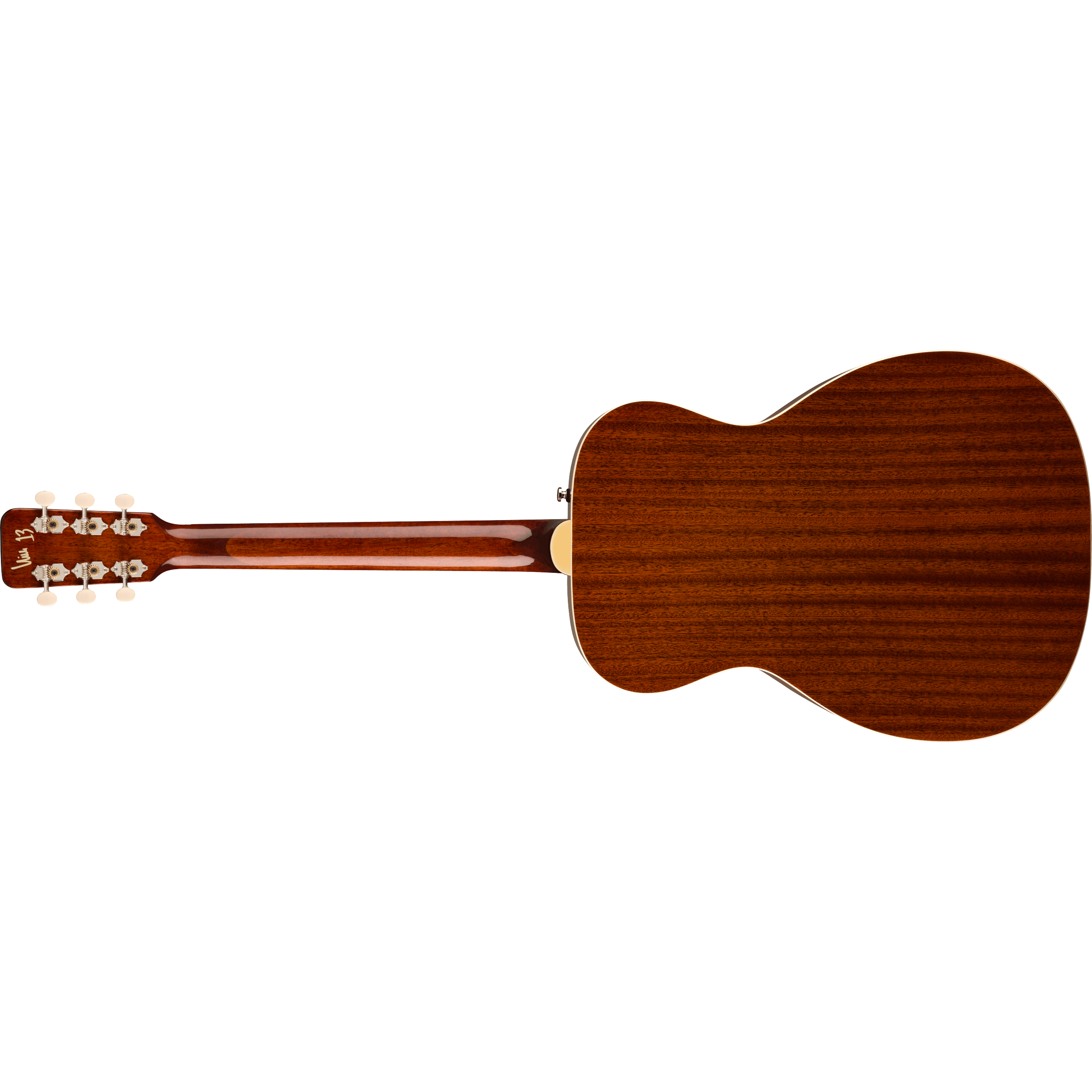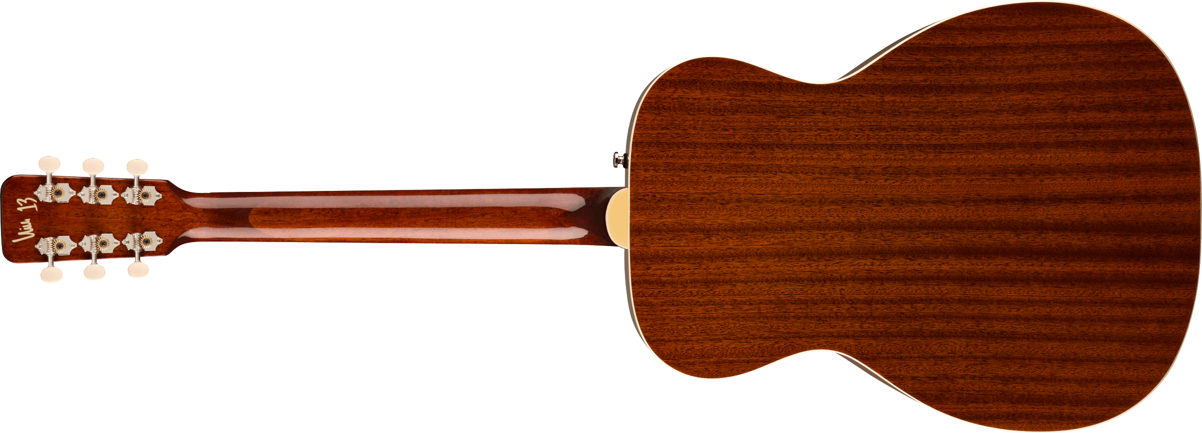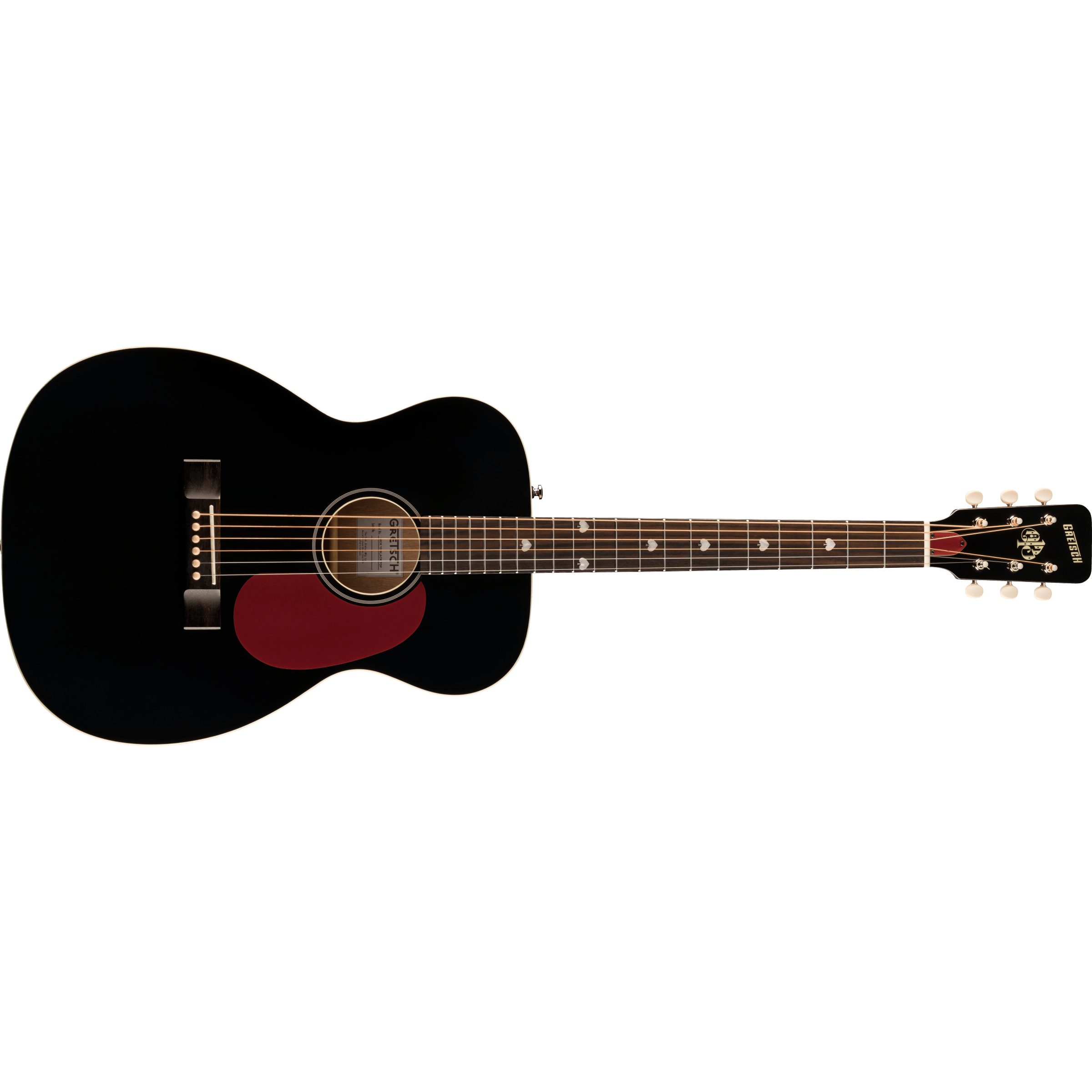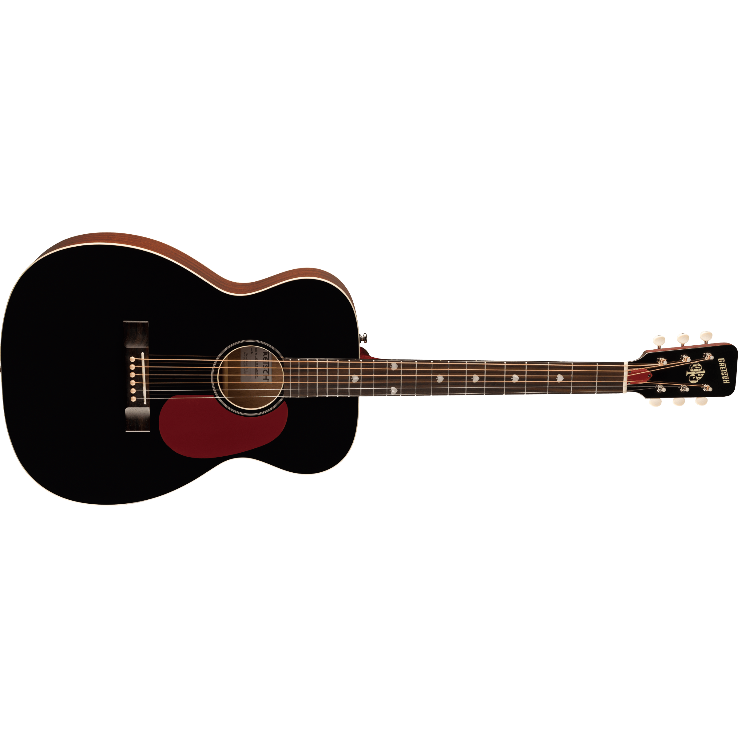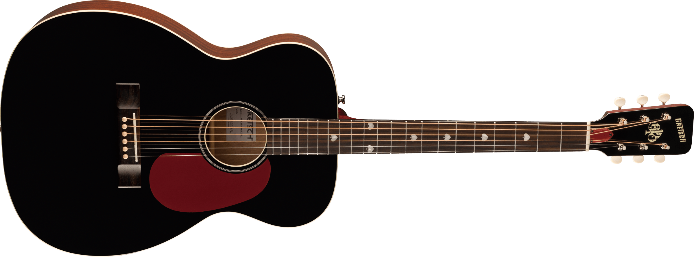Cette guitare est dotée d'une table en épicéa massif, d'un corps en acajou avec une finition brillante, d'un manche en acajou et d'une touche en palissandre. Le style de corps Grand Concert offre une expérience de jeu équilibrée et confortable. La longueur du diapason de 25,25" permet une grande jouabilité et une grande intonation. La touche présente un élégant motif d'incrustations de pique, tandis que la tête porte le logo de pique « n13 » de Nick (associé à son travail en solo). La palette de couleurs noire et sang de bœuf soigneusement sélectionnée avec des notes crème fait écho à ses précédents modèles électriques Gretsch.