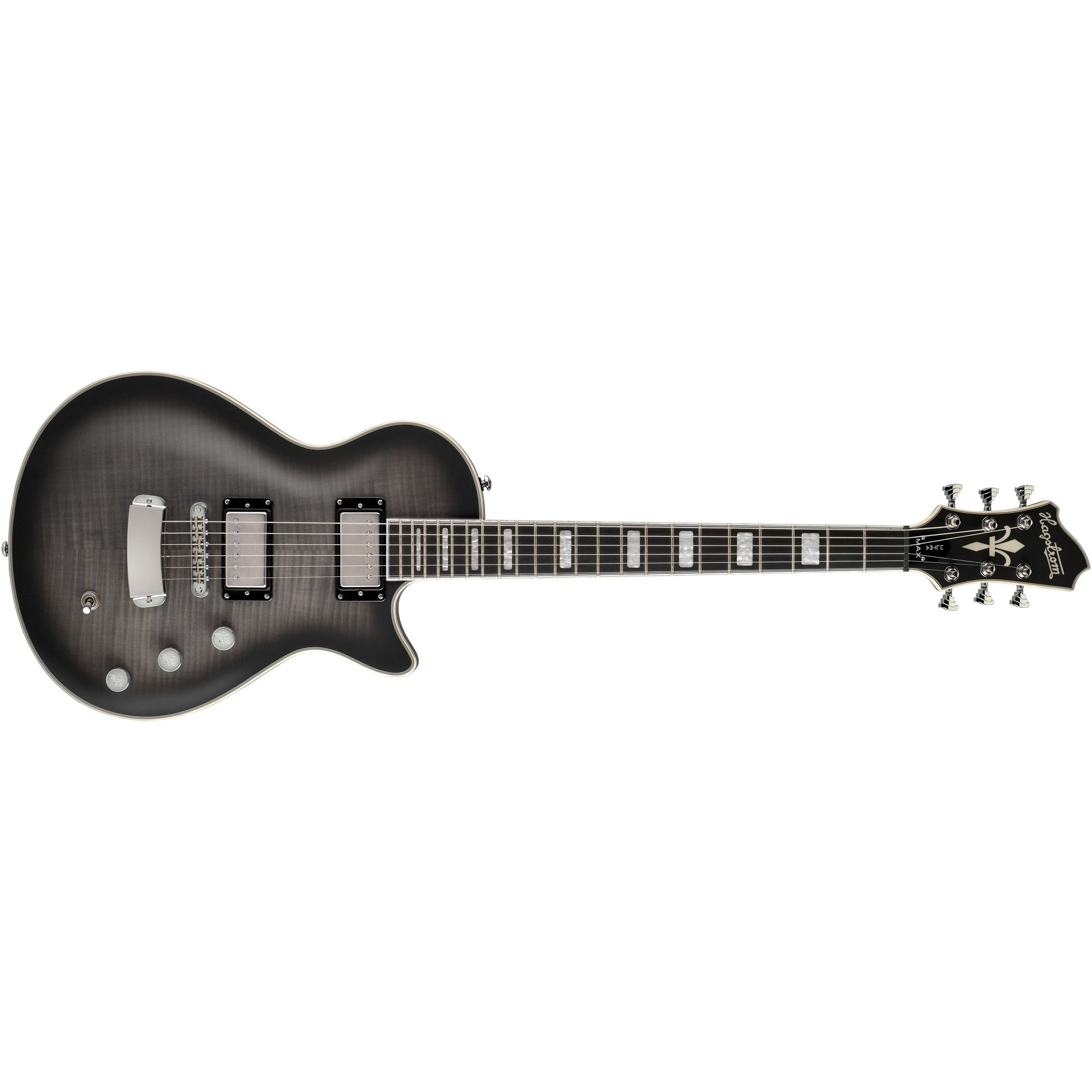 The Ultra Max shares the same small body concept of the Ultra Swede, yet with a slightly larger proportioned mahogany body topped with a thick custom carved flame maple top. The body joins to a mahogany set neck utilizing a mortise and tenon neck joint with a 25.50” scale length, which naturally features our H-Expander™ truss-rod and Resinator™ fingerboard. Its sleek and “ultra-comfortable fast neck” is paralleled with our Custom 60 Alnico-5 pickups with their eloquent Aluminum Brushed covers, delivering the cutting voice that this instrument demands.