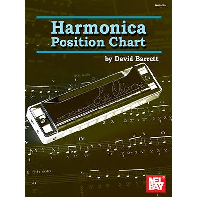 Le tableau de position de l'harmonica couvre toutes les bases nécessaires à un harmoniciste pour jouer en première, deuxième et troisième positions. Pour chaque position, des graphiques détaillés et des exemples notés (utilisant la notation musicale standard et la TAB) sont fournis. Cela comprend : un tableau de disposition des notes d'harmonica C ; Tableau de disposition des notes d'harmonica C avec courbures ; l'échelle naturelle disponible dans cette position avec et sans virages ; les accords de la tonalité de cette position ; les accords utilisés pour le blues dans cette position ; Tableau de blues à 12 mesures avec notes fondamentales des accords pour cette position ; échelle de blues et clé de référence de groupe/harmonica pour cette position. Une référence rapide très pratique des informations théoriques nécessaires pour jouer dans des positions.