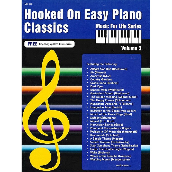 Hooked on Easy Piano Classics Volume 3 est une collection de pianos simples de classiques préférés que tout le monde veut jouer. Le troisième volume propose d'autres arrangements pour piano faciles à lire et à jouer de solos de piano et d'œuvres orchestrales préférés à travers les siècles. Les titres incluent : Symphonie n° 5 (Beethoven) ; Heureux fermier (Schumann) ; Habanara (Bizet) ; faste et circonstance (Elgar); Marche nuptiale (Mendelssohn) et bien d'autres. Tous les pianistes – petits et grands – adoreront cette collection !