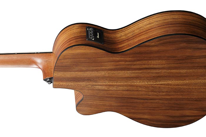 Le dos et les éclisses en siris blanc confèrent à cette guitare une apparence exotique.
