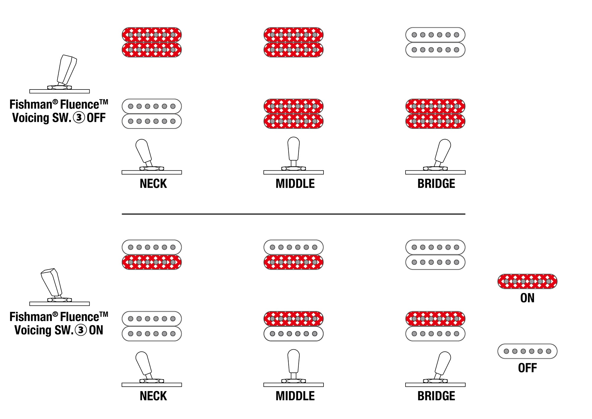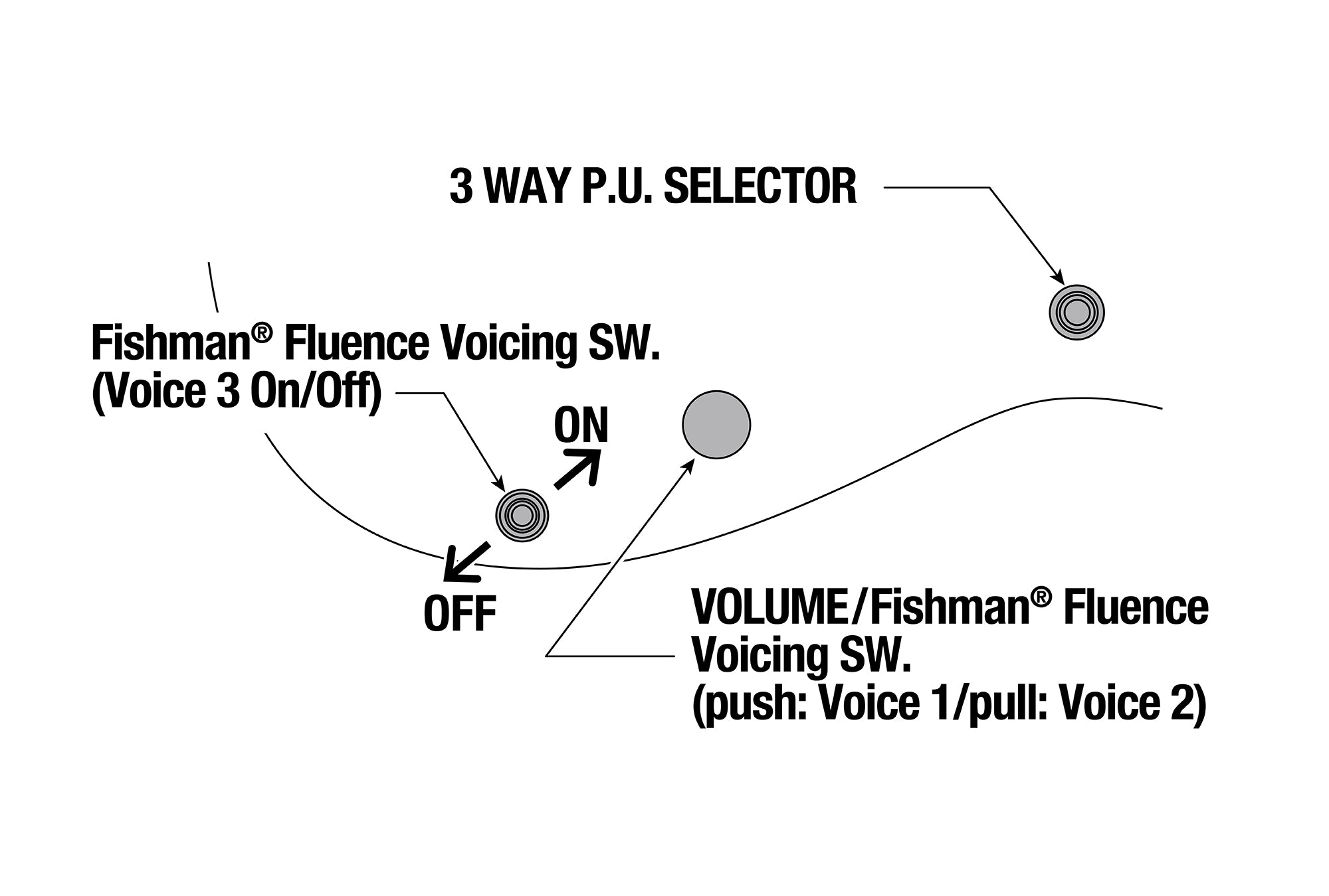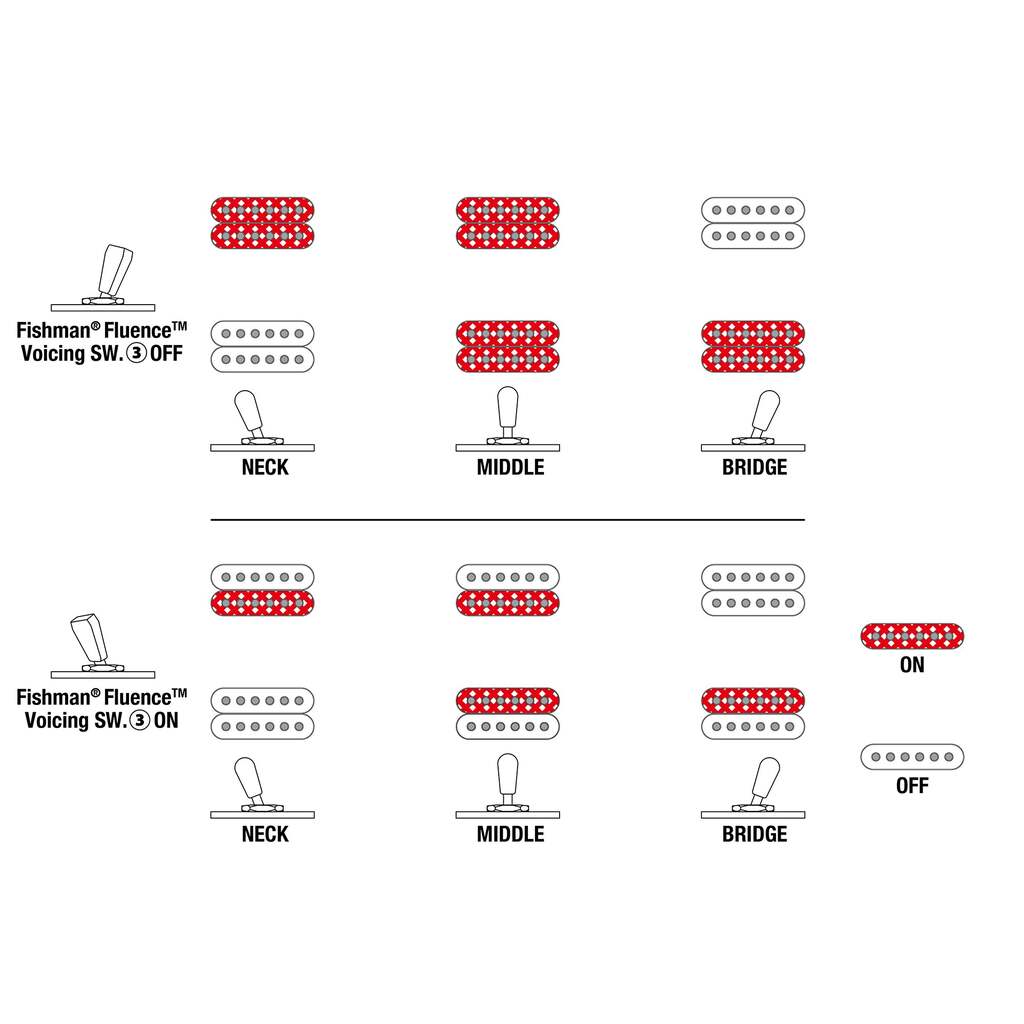 - Fishman® Fluence™ Voicing switch on volume control (push/pull)