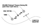 - Commutateur d'harmonisation Fluence™ de Fishman® sur la commande de volume (« push/pull »)