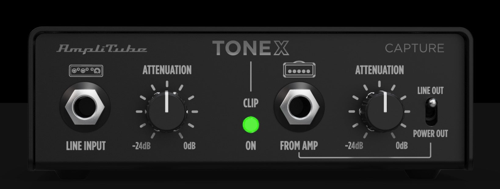 - Deuxièmement, TONEX Capture se connecte à la sortie ligne de votre amplificateur (un haut-parleur doit être connecté) ou à la sortie pédale et vous permet de transmettre ce signal à votre interface au bon niveau en utilisant le bon contrôle d'atténuation.