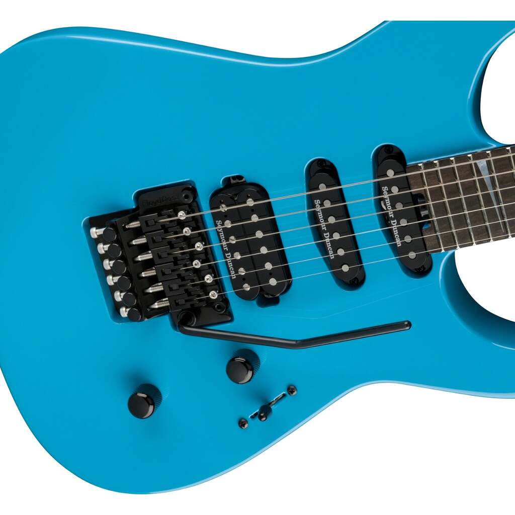 The HSS pickup configuration features a set of versatile Seymour Duncan® pickups that deliver tonal clout. The Seymour Duncan JB™ TB-4 bridge pickup roars with hot-rodded attitude and a powerful low end, while the Seymour Duncan Custom Flat Strat® SSL-6 RWRP Single-Coil middle and Seymour Duncan Custom Flat Strat® SSL-6 neck pickups radiate with glassy treble tone and scooped mids that perform well across a multitude of genres. Harness the sonic horsepower with a versatile five-way blade pickup switch and single volume and tone controls. Other premium features include a Floyd Rose® 1500 Series double-locking tremolo bridge system for reliable tuning stability throughout daring and aggressive playing theatrics, Gotoh® MG-T locking tuners and Dunlop® dual-locking strap buttons.