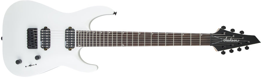 Alimenté par deux micros humbucker Jackson à montage direct, à montage direct, le JS32-7 DKA HT est également équipé d’un commutateur à lame à trois voies, de commandes de volume et de tonalité uniques, d'un pont Jackson HT7 fixe compensé à cordes traversantes, moulé sous pression syntoniseurs et notre poupée AT-1 3x4 (3 plus, 4 sous).