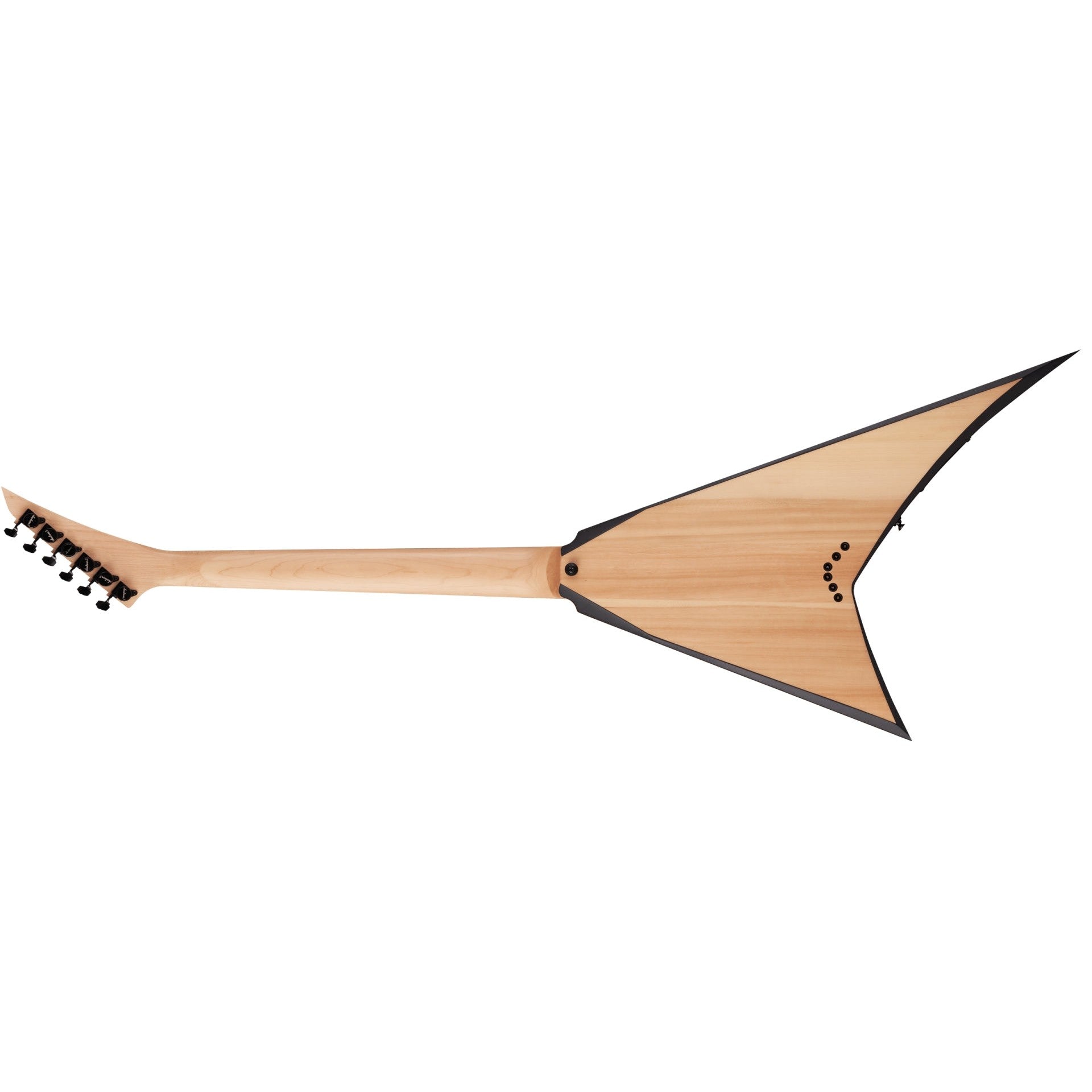 Cet instrument métallique sophistiqué est doté d'une finition naturelle sur le corps en peuplier avec une table en érable flammé, d'une tête Jackson assortie à 6 lignes, d'un pickguard noir simple et de matériel noir.