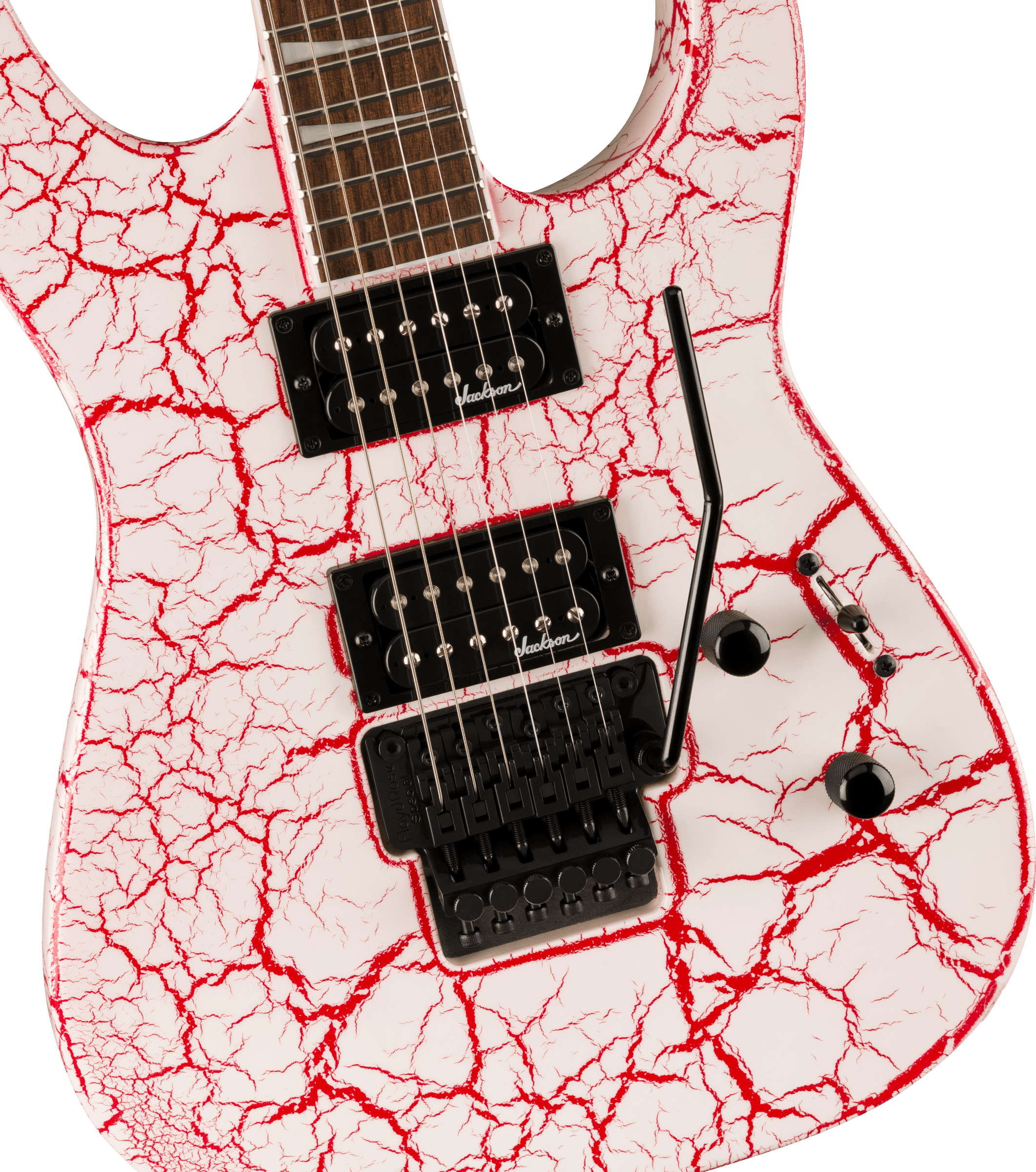 La SLX DX Crackle est équipée dâune paire de micros humbuckers Jackson à haut niveau de sortie, lesquels lui permettent de produire un son plein, large et crunchy, parfait pour vos solos les plus explosifs et vos rythmiques les plus musclées ! Le seul potentiomètre de volume et lâunique contrôle de tonalité, associés au sélecteur coulissant à trois positions, vous aideront à sculpter le son de ces micros et à en dompter lâincroyable puissance. Le chevalet avec vibrato Floyd Rose® Special à double système de blocage est encastré. Il est très facile à utiliser et vous assure une parfaite tenue de lâaccordage, même après vos plus gros dive bombs.