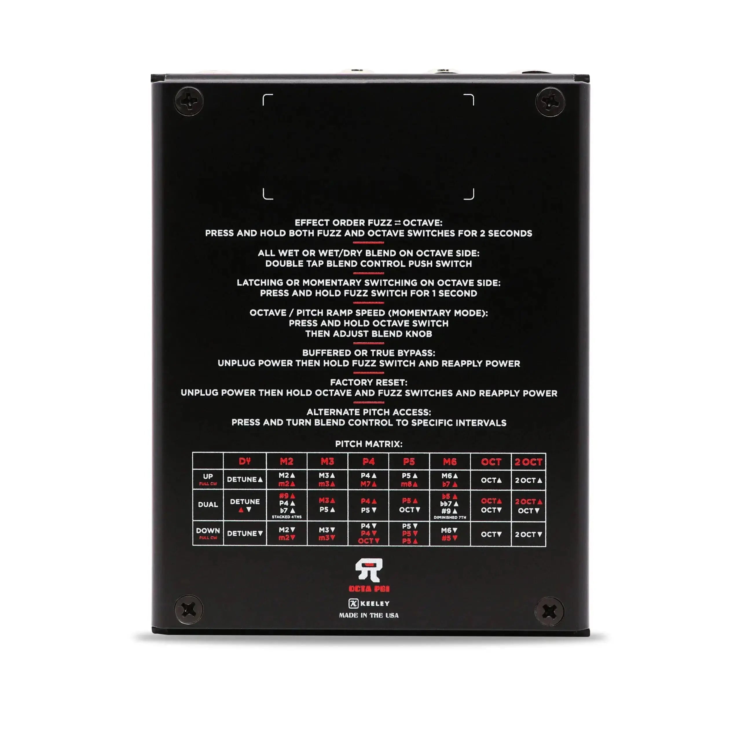 - Changement instantané de l'ordre des effets : basculez facilement entre l'octave/la hauteur avant ou après le fuzz en maintenant les deux commutateurs au pied enfoncés.
