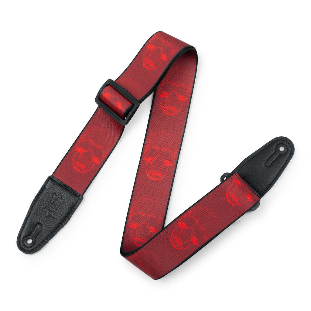 Levy's - 2-Inch Wide Polyester Guitar Strap with Dark Red & Red Scanned Skull Motif MPD2-114