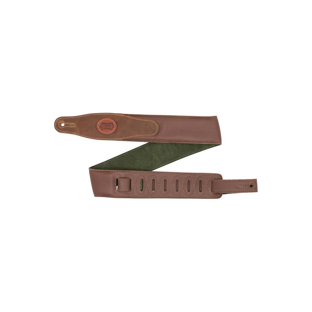 - 2.5″ Brown Padded Garment Leather Guitar Strap with Olive Green Suede Backing