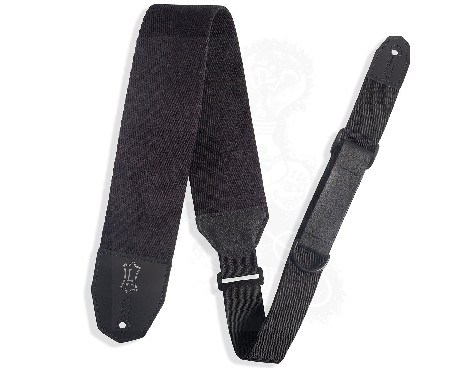 3 inch Right Height Black Cotton Leather Guitar Strap Featuring RipChord Technology™ for Easy Adjust. Black Webbing And Leather With Polyester Webbing Adjustable From 43 to 57 inches.