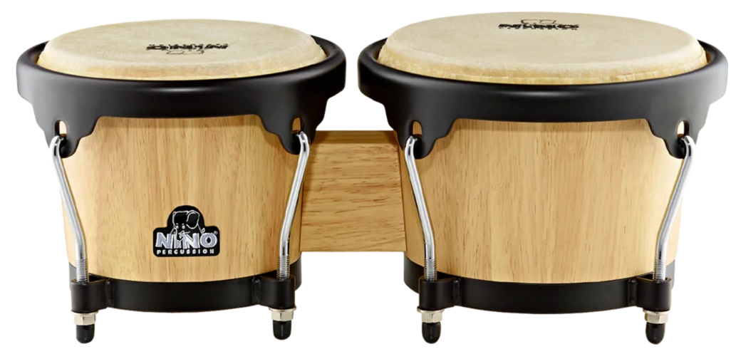 Meinl - Nino - Bongos en bois 6 1/2" et 7 1/2" Fût naturel Accastillage noir NINO3NT-BK