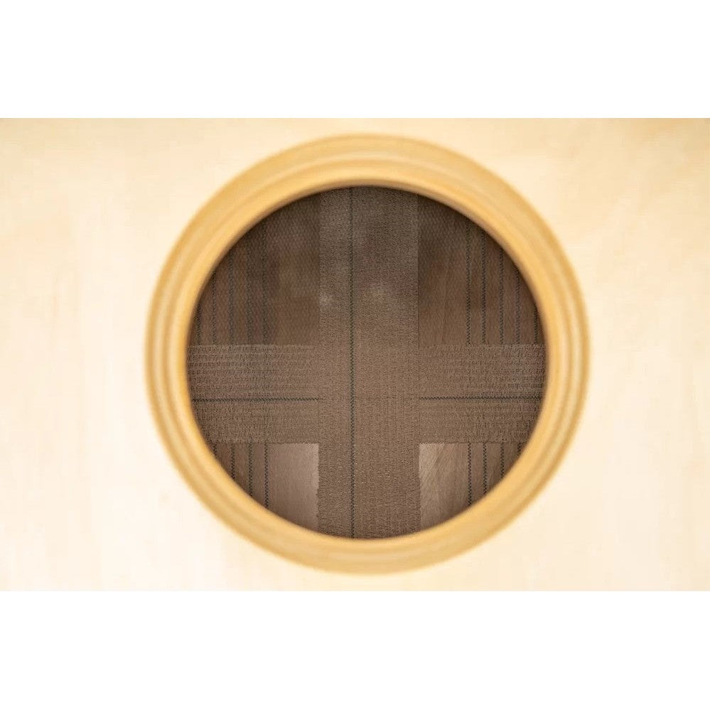 Adjustable strings and an extra thick wooden sound port ring for bass compression gives the Cantina Line a wide dynamic range of highs and lows. Two sets of eight micro-coiled metal cajon strings give a snapping snare effect and are adjustable with the included tuning key. These strings are hand-wound in the style of master cajon builder, José "Pepote" Hernández Diaz, and respond with the upmost sensitivity. The 9-Ply, 12 mm thick Baltic Birch resonating body develops the sound into a full, punchy tone that projects with clarity and warmth. A decorative wood inlay adds a touch of elegance to the overall appearance. The Cantina Line comes with a Walnut front plate. Made in Spain.