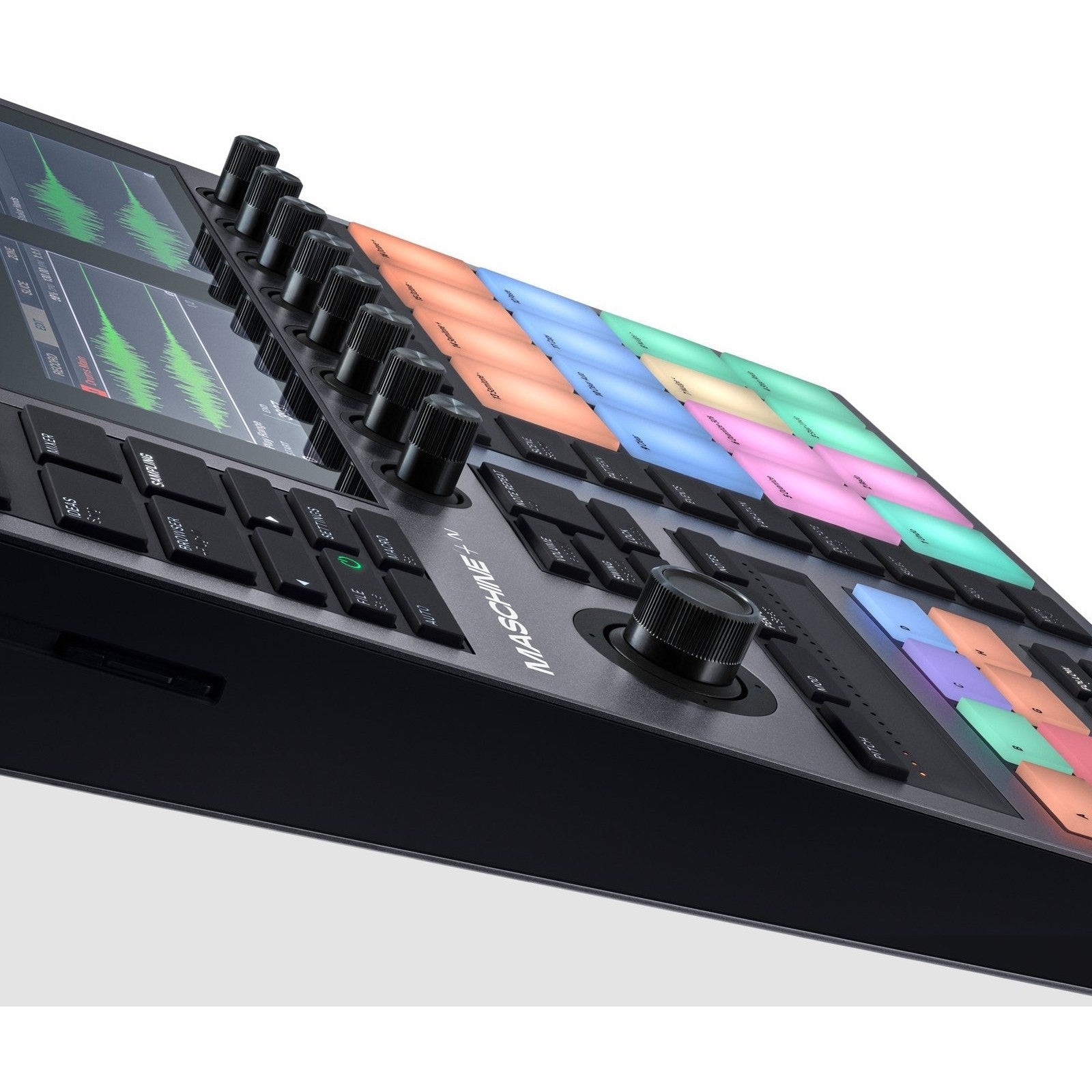 - Grands, lumineux et infiniment expressifs – les pads de MASCHINE+ sont conçus pour jouer des rythmes, des mélodies et des accords de façon intuitive. Utilise-les comme un clavier avec une véritable expression, déclenche le step-séquenceur si c'est ton truc, ou découpe des samples et assigne-les aux pads pour créer des kits personnalisés en quelques secondes.