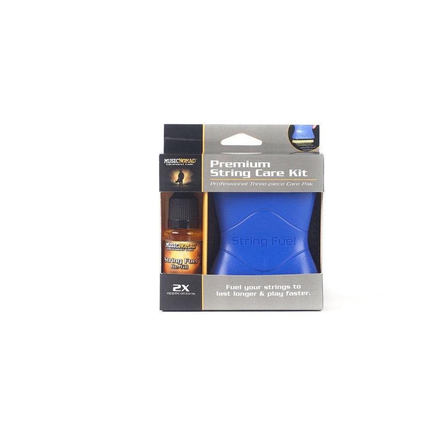 MusicNomad's Premium 3-Piece String Care Kit contains one each of our most popular items to care for all string types found on your guitar, bass, banjo, ukulele, mandolin, etc. Our ergonomic, no-mess applicator quickly & easily cares for your strings. Our wide applicator fits across all your strings in one easy swipe. Pressure to the pad releases the solution to clean & lubricate your strings to last longer and sound better while reducing finger noise and enhancing the speed you can slide your fingers. String Fuel is a hybrid blend of naturally occurring oils that are speed-blended with premium-quality mineral oils to deliver as string cleaner & lubricant unlike any other. It's silicone-free and even conditions unfinished fretboards. You know it’s time to re-fuel when you press on the applicator and there is no oil residue. No problem, just re-fill with our convenient dropper until the pad is slightly moist again. Do not over-saturate. Comes with a lint-free 6" x 6" microfiber cloth that cleverly stores inside the handle.