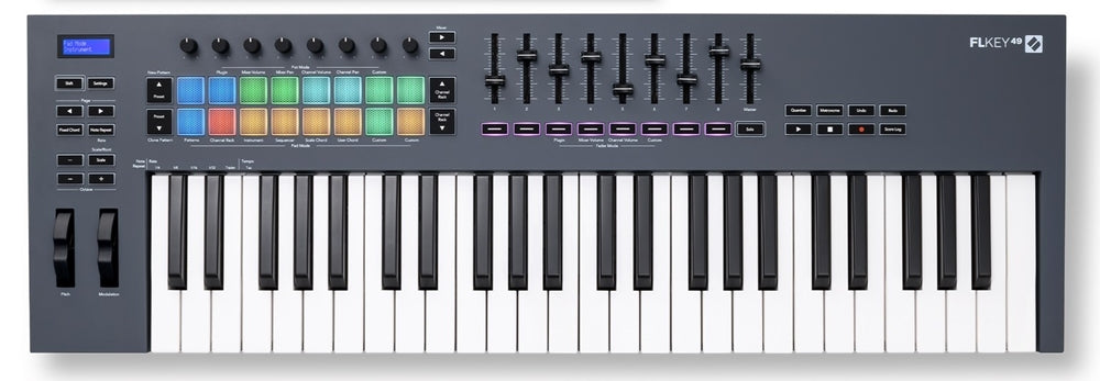 - FLkey 49 est le clavier de contrôle MIDI ultime pour la production musicale pratique dans FL Studio. Accédez instantanément à votre séquenceur, à votre rack de canaux et à votre table de mixage, étendez votre créativité avec les modes « Scale » et « Chord », et bien plus encore.